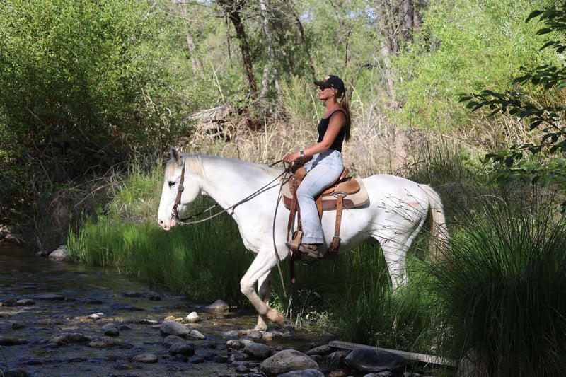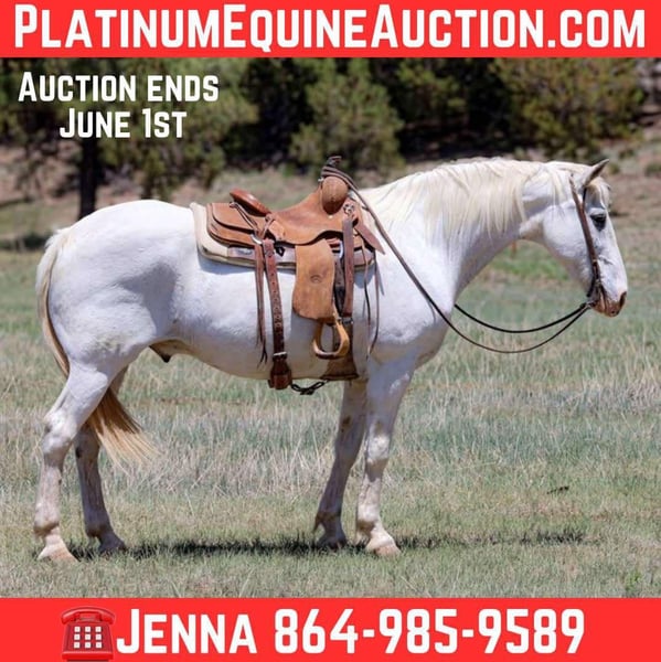 ONLINE AUCTION Place your bids at www.PlatinumEquineAuction.com Starting Bid $3500 Auction ends June 1st, 2025 Need a new saddle? Check out White Rock Saddles on our website or Facebook! Cartwright is a striking 12 year old grade gelding standing 15.2. This gentle giant couldn’t be sweeter if he tried and is the perfect fit for all ages, if your looking for a gelding that will take care of the whole family look no further! Cartwright and I have explored miles and miles of trails, meandered through rolling hills, rushing creeks, fallen logs, deep forest, rigid and rough terrain, and even a simple stroll through town. This Cadillac of a horse has more whoa than go, helping to confidentially take you anywhere you ask him! Cartwright has no spook to any type of city traffic, cars, trash trucks and motorcycles! He’s also amazing in the arena! He walk, trots, lopes both ways on a loose rein and neck reins like a champ, he moves off your leg well and is super easy and simple to ride in the arena. If you’re looking for a willing, honest, forgiving, & just all around gem, Cartwright is the guy for you!! He stands perfectly for baths, tacking, grooming, bridling and shoeing! He loads in the trailer with ease as well!! He will come with a clean health and coggins! We offer shipping nation wide! If you have any questions don’t hesitate to make a call to Jenna Edwards 864-985-9589. Located in Cottonwood, AZ. ONLINE AUCTION Place your bids at www.PlatinumEquineAuction.com Starting Bid $3500 Auction ends June 1st, 2025 Need a new saddle? Check out White Rock Saddles on our website or Facebook!