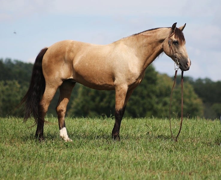 ONLINE AUCTION Place your bids at www.PlatinumEquineAuction.com Starting Bid $3500 Auction ends September 1st, 2024 Need a new saddle? Check out White Rock Saddles on our website or Facebook! Amigo is everyones best friend! And he is not a bad friend to have around… he has a lot of things going for him, such as that beautiful buckskin, coat, that friendly personality, that sweet lope and that big thick mane! He is certainly is a dream come true! Amigo is an 11 year old buckskin quarter horse cross gelding standing around 14.1hh. Amigo has done it all out on the ranch he has pasture roped and doctored sick ones, been hauled to barrel races and rode down the trails! Amigo has been ridden in multiple states from New Mexico to Kentucky. He will cross creeks, ditches, logs and navigate rough rocky areas. He has a nice ground covering walk, smooth jog, a good lope, he reins around anc backs as well! He has been exposed to all kinds of wildlife such as deer or turkey or other animals like cows or dogs and will go anywhere that he is asked too. He has been rode many miles in the mountains of Eastern Kentucky and encountered every obstacle possible on the trail. He will go up or down even the steepest slopes, across deep creeks, over downed trees, and over all types of rough terrain while still being sure footed. If you want to have a good ride and look good on your ride all at the sametime… Amigo is your man!!! Feel free to call Lucky 13 Equine Lysandra 765-717-2041 with any questions. Located in Brodhead, KY. ONLINE AUCTION Place your bids at www.PlatinumEquineAuction.com Starting Bid $3500 Auction ends September 1st, 2024 Need a new saddle? Check out White Rock Saddles on our website or Facebook!