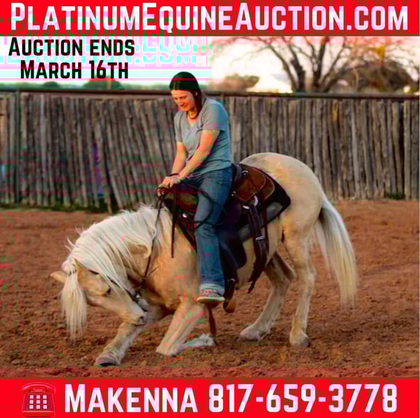 ONLINE AUCTION Place your bids at www.PlatinumEquineAuction.com Starting Bid $3500 Auction ends March 16th, 2025 Need a new saddle? Check out White Rock Saddles on our website or Facebook! This is not just any horse, he is a trick pony because he lays down! (Even if it’s only one trick, it still makes him a great conversation piece) Houdini is an 13 year old grade gelding. He stands at 14.1hh tall. He has the most precious face with the prettiest, gentle and kind eye. This sweet guy has been used for almost anything you can think of! He is an excellent trail horse and will gladly climb up or down anything that you point his nose towards. Houdini will happily go through any body of water without missing a beat. He is not spooky on the trails and can handle any situation that you might encounter, whether that be wildlife, fallen trees, ditches, or treacherous terrain. Houdini is a great leader, but also has no issues falling behind in the back if you want him too. He is very calm and sure footed! Houdini has been hauled out to town and to rodeos with many distractions and crowds! He has been to a few playdays, and has seen the patterns a bit! Houdini is a breeze to catch and will come up to you anytime he sees you at the gate. He will load in any trailer without any fuss. Houdini is the perfect addition to any barn. He has such a sweet disposition and loves attention and affection. Located in Lipan, TX. We can help arrange hauling anywhere in the US, Hawaii or Canada! Please call or text Makenna Hartzell 817-659-3778 with any questions. ONLINE AUCTION Place your bids at www.PlatinumEquineAuction.com Starting Bid $3500 Auction ends March 16th, 2025 Need a new saddle? Check out White Rock Saddles on our website or Facebook!