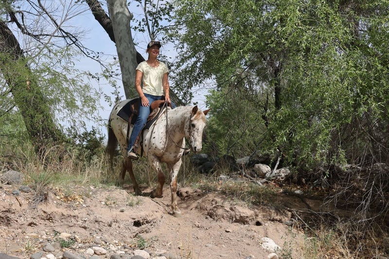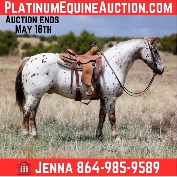 ONLINE AUCTION Place your bids at www.PlatinumEquineAuction.com Starting Bid $3500 Auction ends May 18th, 2025 Need a new saddle? Check out White Rock Saddles on our website or Facebook! Baxter is a 13 year old grade gelding standing 14.2 hh. If you’re looking for an eye catching, all around gem for any age, Baxter is the perfect fit for you! This gentle guy is so reliable, you can count on him for just about anything. From the busy streets of town, dump trucks, bikes, and semis; to rushing creeks, thick brush, rocky terrain, or steep slopes, Baxter handles it all with grace. His talent doesn’t stop outside though. He is amazing in the arena as well! He will walk, trot, lope both ways, can side pass up to gates and neck reins beautifully!! He has also been used as a kids lesson horse and in several rodeos, gymkhanas and 4H shows! This trustworthy sweetheart has helped several new riders gain so much confidence while learning how to ride! He also stands wonderfully for baths, shoes, tacking, grooming, bridling and loads like a champ. He has absolutely no buck, bite, rear, or bolt and will come with a clean health and coggins! I can help assist arrange transport anywhere in the US! Don’t hesitate to call or text with any questions Jenna Edwards 864-985-9589 Located in Cottonwood, AZ. ONLINE AUCTION Place your bids at www.PlatinumEquineAuction.com Starting Bid $3500 Auction ends May 18th, 2025 Need a new saddle? Check out White Rock Saddles on our website or Facebook!