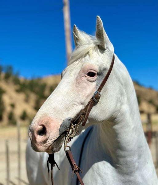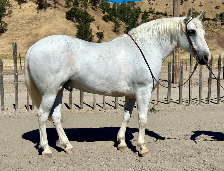 ONLINE AUCTION Place your bids at www.PlatinumEquineAuction.com Starting Bid $3500 Auction ends July 7th, 2024 Need a new saddle? Check out White Rock Saddles on our website or Facebook! Toad is a 12 year old grey and white paint cross gelding standing 15HH. This boy has the looks, brains and gentleness everyone hopes to find! Toad is a stout built boy, who is the easiest keeper. He is a friendly horse, always curious to know what you are doing. He adores attention and wants to be your best friend, you are sure to fall in love with his affectionate personality. Toad has a great mid-pace when riding out on the trails, he will coast along at any speed you desire. He’s easy to ride and never refuses. Neck rein or direct rein, he can do either. Will easily W-T-L in the arena and has a nice collected stop and reverse. We have hauled Toad to many different locations and he’s always be a complete gentleman. He has been rode over trail obstacles and through tricky terrain out in the country side. He is quiet, calm and responsive at all times. He is used to all farm animals, vehicles, and machinery. He can be left untouched for periods of time and return to riding the same horse. Toad will let you clip, bathe, and tack him up easily as he stands quiet, and patient. Toad truly is one of kind with his looks, and his personality! He is located in Bitterwater, CA. For more info contact Cheyenne Rey 831-537-8746. ONLINE AUCTION Place your bids at www.PlatinumEquineAuction.com Starting Bid $3500 Auction ends July 7th, 2024 Need a new saddle? Check out White Rock Saddles on our website or Facebook!