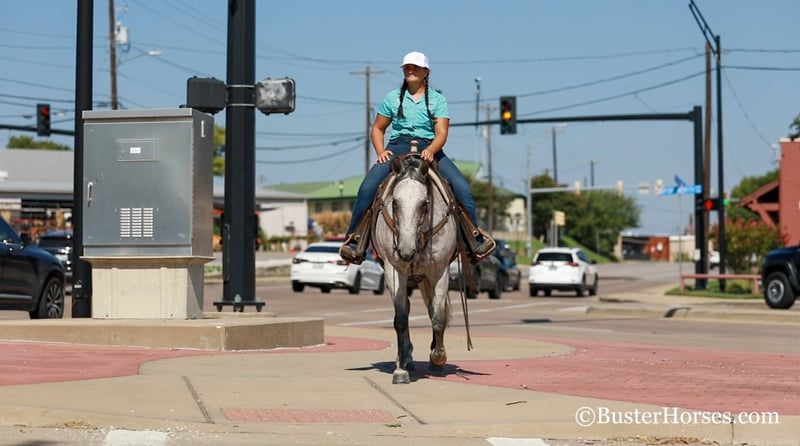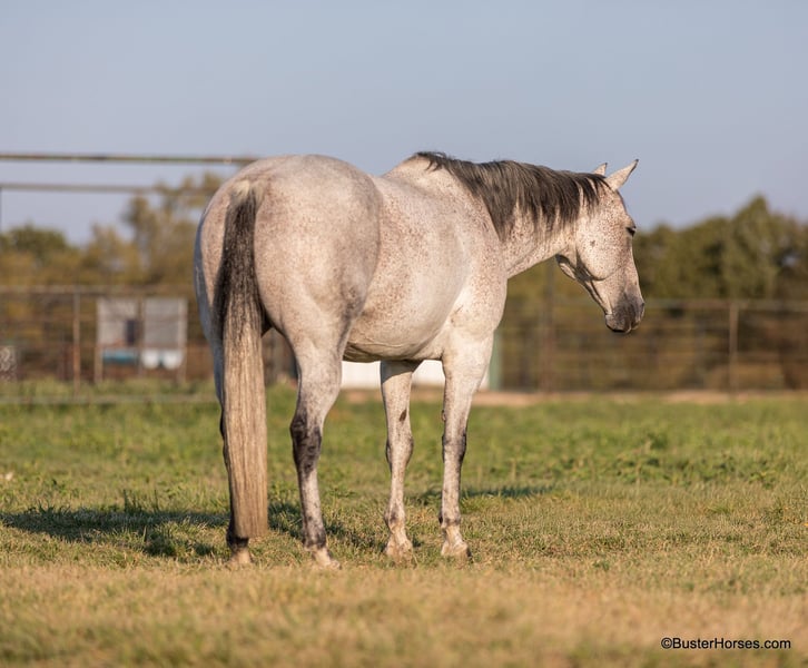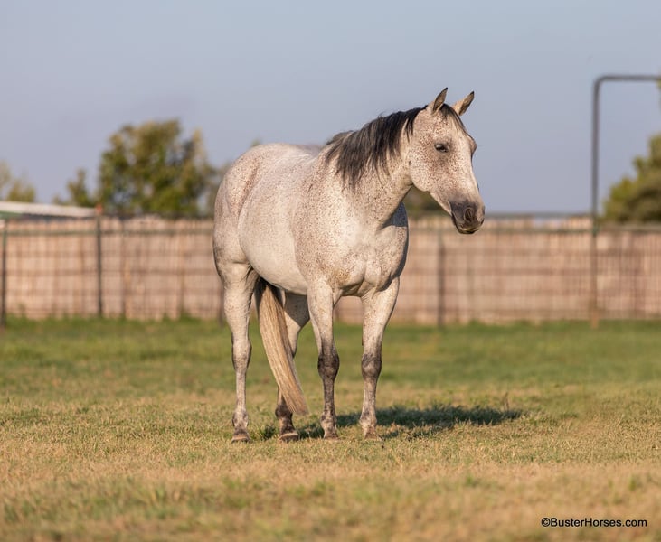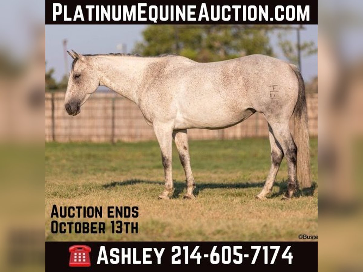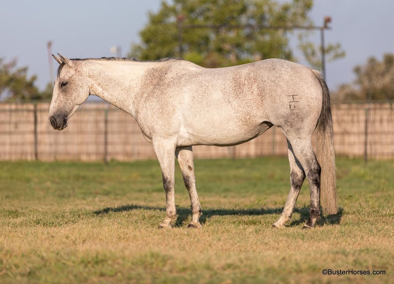 ONLINE AUCTION Place your bids at www.PlatinumEquineAuction.com Starting Bid $3500 Auction ends October 13th, 2024 Need a new saddle? Check out White Rock Saddles on our website or Facebook! “Mary Lynn” – 15H, 12 year old gray grade quarter horse mare. “Mary Lynn” is one of the most versatile, true all-around horses we have had in a long time! Amazing family horse, pleasure horse, trail horse or first horse. This one could get you started in literally ALL OF IT – would be great for the lower level dressage, Pony Club, Hunter/Jumper shows, but and also take a young rider to the 4-H shows, compete in the ranch riding and Ranch versatility competitions, trail horse competitions, play days, speed events, drill team, queens competitions, and even rope off of her! Mary Lynn is absolutely pleasant, all business, zero non-sense whatsoever….but still very personable, sweet, kind, great natured, and enjoyable to be around. She is smooth and pleasant to ride anywhere, every single step of the way. She has good cadence, and carries herself very naturally and easily. Comfy to just sit on, uncomplicated – just point wherever you want and she goes there. Smooth gaited and one of the favorite ones that all the kids fight over riding. She absolutely loves the water… as in you almost have to be a little careful riding around water, or walking up to grab a drink – because she will definitely encourage you to just go get in it, if she is given the chance! She hops right on the trailer like a seasoned good old Ranch gelding, and she hauls and rides out just as confidently alone as she does in a group. She catches both leads easily, and has a great stop on whoa. Very consistent, solid, and honest – can pull her bridle off and she’ll go anywhere that you point her with just a little nudge across her neck. She is always happy to stop, great brakes on “Whoa”, but willing to go to work and doesn’t make you ask 17 times before she gives you a trot or a nice little hobby horse lope. Easy to get along with in all ways, great ground manners, happy kept up in the barn, happy outside and gets along really well in a group of horses, easy to turn out with anyone. She comes right up to you to be caught and loves to have attention. If you were looking one to just enjoy riding, don’t look past Mary Lynn. To see additional videos, go to our website: BusterHorses.com or our Facebook page Buster Horses. Check our website for buyer reviews, more videos, additional info: etc: https://busterhorses.comMary_Lynn Mary Lynn was just shod this week, her teeth were also done by an equine dentist, she had her ears preemptively treated for ticks, and she was also power packed wormed. She is good to shoe, has great feet and also goes well barefoot – if her new owner prefers her to be barefoot, we can have her shoes pulled and trim her prior to her heading to her new home. She will arrive at her new home up-to-date and ready to go to work! Please call anytime for more information at 214-605-7174 Mary Lynn is located in Weatherford, TX – one hour from Dallas / Fort Worth International Airport. She is an easy day trip or fun overnight trip to come try out, from anywhere! We are experienced, knowledgeable sellers, and we can help with quickly arranging affordable shipping to any buyer’s location – we have experience shipping worldwide – including regularly to Hawaii, Canada, Mexico, Europe, and South Africa. ONLINE AUCTION Place your bids at www.PlatinumEquineAuction.com Starting Bid $3500 Auction ends October 13th, 2024 Need a new saddle? Check out White Rock Saddles on our website or Facebook!