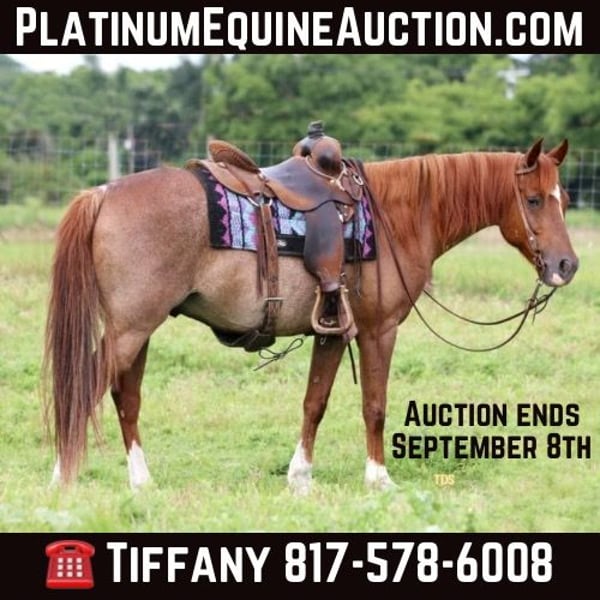 ONLINE AUCTION Place your bids at www.PlatinumEquineAuction.com Starting Bid $3500 Auction ends September 8th, 2024 Need a new saddle? Check out White Rock Saddles on our website or Facebook! Gumby is a 12 year old Quarter Pony that has seen and done it all! From the ranch to the playdays he’s always up for an adventure. He is very gentle, stands 13.2h and easily packs around smaller adults and any size youth riders. Gumby is well suited for any job asked of him; he is athletic and has some speed when asked. At a recent playday he helped his rider win all of her events! He is 1 hand broke, stops great, knows his leads, and listens to his rider. Gumby is also fun to ride outside as he isn’t afraid of anything and will cross water, ditches, and go through trees. He rides the same by himself as he does with other horses. He is always easy to catch, groom, and saddle. He hauls great and even backs out of the trailer on his own. Gumby is 100% sound and up to date on everything, give us a call/text to come meet him! Tiffany Smith 817-578-6008 Located in Stephenville, TX. ONLINE AUCTION Place your bids at www.PlatinumEquineAuction.com Starting Bid $3500 Auction ends September 8th, 2024 Need a new saddle? Check out White Rock Saddles on our website or Facebook!
