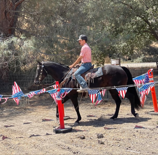 ONLINE AUCTION Place your bids at www.PlatinumEquineAuction.com Starting Bid $3500 Auction ends August 25th, 2024 Need a new saddle? Check out White Rock Saddles on our website or Facebook! Batman is a stylish black gelding that is 13 years old and a solid built 15 hands. Batman is the Cadillac of trail horses with his is easy, comfortable style. He has been ridden many outside trail miles and is always happy to go out. He will navigate his way around downed trees, cross ditches and handles tricky switchbacks with ease. He is a steady, calm, easy going guy who is always safe and one you can trust in all situations. Batman is an obstacle master he will walk over the bridge, tarp, tires, logs and will walk through or over anything you ask him. Batman rides well in the arena he picks the correct leads has a smooth trot and a nice stop and back up he has an easy going, laid back attitude. He is safe for a multitude of riders. He is easy to handle clips, ties, and bath. He loads well hauls good and handles new places well. He will go out alone or in group setting and doesn’t mind being in the front, middle or the rear. He is good with other horse and will happily be pastured or kept in a stall. Batman would make a great family horse with his clam easy going disposition. He is good for the farrier and vet. He will be the same horse everyday and handles time off well. He has been ridden out to check cattle and has been on overnight camping trips. For more information please contact Longhorn Ranch Dina 831-537-1915 located in Paicines, CA. ONLINE AUCTION Place your bids at www.PlatinumEquineAuction.com Starting Bid $3500 Auction ends August 25th, 2024 Need a new saddle? Check out White Rock Saddles on our website or Facebook!