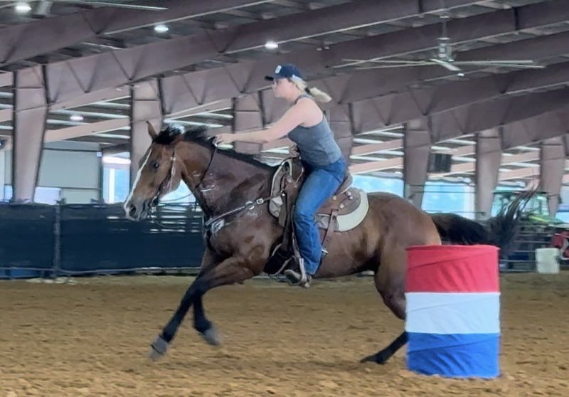 ONLINE AUCTION Place your bids at www.PlatinumEquineAuction.com Starting Bid $3500 Auction ends June 23rd, 2024 Need a new saddle? Check out White Rock Saddles on our website or Facebook! Miss Leo There Saggy aka “Swift” is a 2011’, 15.1H AQHA bay mare. The best of both worlds, from the trail to the barrel race, this mare is quiet and EASY! Swift has been used primarily as a trail horse with an elderly lady who also ran the barrels on her! She is a very quiet mare that rides really nice and handy! When we say barrel horse, don’t picture high headed and hot. This mare is chill and relaxed and NEVER gets hot or anxious, at a race or on the trails! She is absolutely calm down the ally every single run you make on her and would be the PERFECT fit for a beginner or novice rider who wants to run barrel and pleasure ride! Swift rides one handed and stops perfect! She’s extremely easy to operate and simple to ride inside and out of the arena. Anyone that has never ran the barrels will get along with the mare! She has a good personality and when really warms up to her new person, she’s the ride or die type you’ll never want to part with! She loads, leads, bathes and ties great! She just got her teeth done by an equine dentist and has a fresh set of shoes! Swift is ready to go hit the trails or the next jackpot with her next person! Go to her website page northtexashorsecompany.com/swift for more pictures and footage! Please call Blair with North Texas Horse Company for more info at 817-757-3046. We love to talk about her! We are located in Weatherford, TX and can help arrange affordable shipping to anyone!! ONLINE AUCTION Place your bids at www.PlatinumEquineAuction.com Starting Bid $3500 Auction ends June 23rd, 2024 Need a new saddle? Check out White Rock Saddles on our website or Facebook!