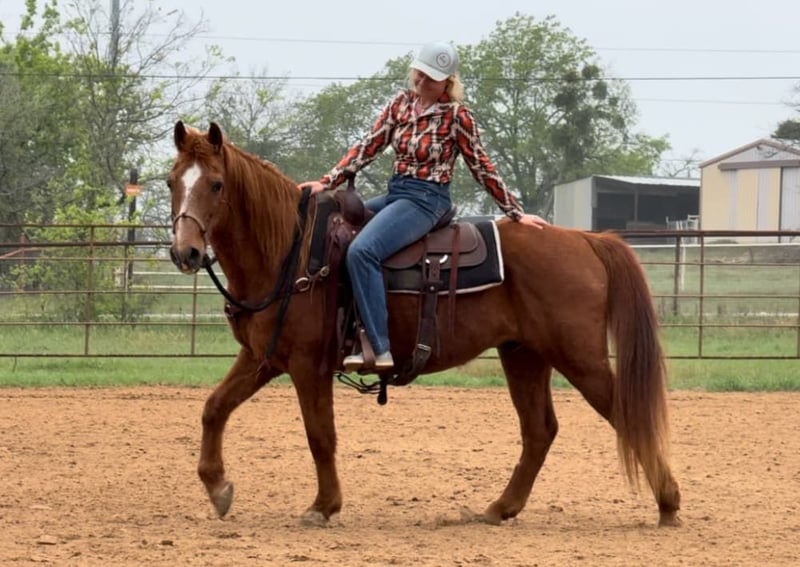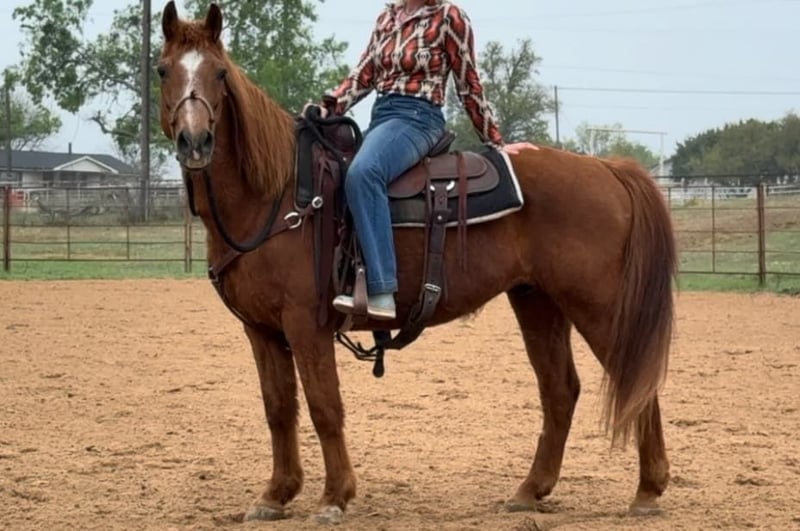 ONLINE AUCTION Place your bids at www.PlatinumEquineAuction.com Starting Bid $3500 Auction ends April 20th, 2025 Need a new saddle? Check out White Rock Saddles on our website or Facebook! Andy is a been THERE, done THAT 14.1H, 15 yr old sorrel gelding. He has spent his life as a dude ranch horse in Oklahoma and was primarily used by kids! Andy has an absolute heart of gold and is sure to keep your family safe! He is extremely gentle, kind and easy going. He’s the type of horse that you can leave off for months and pull up fresh to saddle up and go! He loves attention and is a total puppy dog. Andy would thrive as a family horse, trail horse or even lesson horse for anyone from kids to beginner adults! He’s a kind soul who aims to please!! He rides good and knows all the things. The kids rode him in just a halter all the time and he stays broke in just a bosal/hackamore set up! He moves off leg, goes the speed you ask, has super COMFY gaits and stops right when you ask! Andy has absolutely ZERO buck, bolt or rear and is incredibly gentle. He’s easy stands quiet for mounting and dismounting and isn’t one you have to micro manage to have a good time! He’s great with all new sights and scenes. He’s not bothered by anything, loads, leads, bathes and ties great! He’s easy to catch and comes right to you for attention! He would be the perfect starter horse or baby beginners horse! Andy is such a sweet boy and is ready to go be someone’s confidence booster! More pics and videos on his website page at northtexashorsecompany.com/andy. Please call Blair with North Texas Horse Company for more info at 817-757-3046. We are located in Weatherford, TX and can help arrange affordable shipping to anyone!! ONLINE AUCTION Place your bids at www.PlatinumEquineAuction.com Starting Bid $3500 Auction ends April 20th, 2025 Need a new saddle? Check out White Rock Saddles on our website or Facebook!