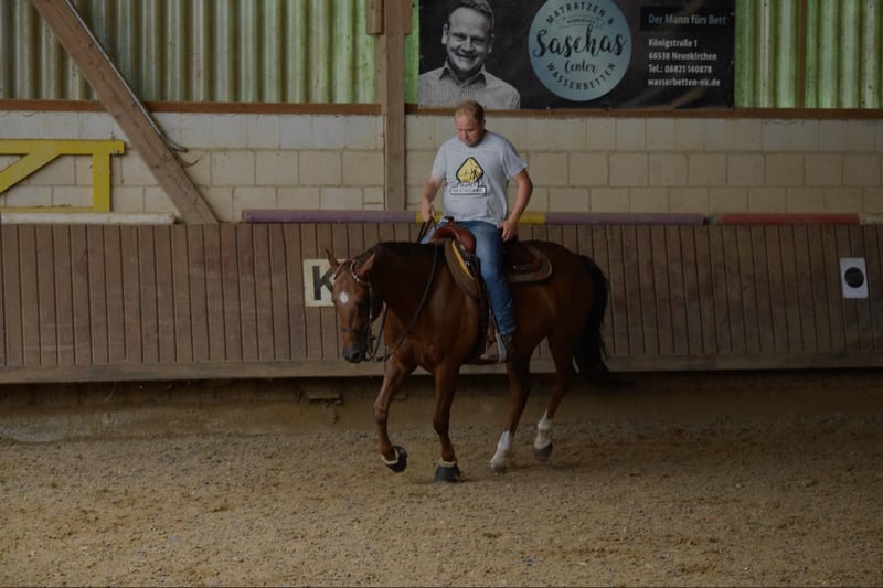 Maddox ist ein Reining ausgebildeter Wallach,der nur noch im Freizeitbereich geritten wird. Er ist leicht reiten und verzeiht jeden Fehler. Er lässt sich sehr gut im Gelände reiten und ist immer eine Sichere Nummer. Preis ist VB. Platz vor Preis