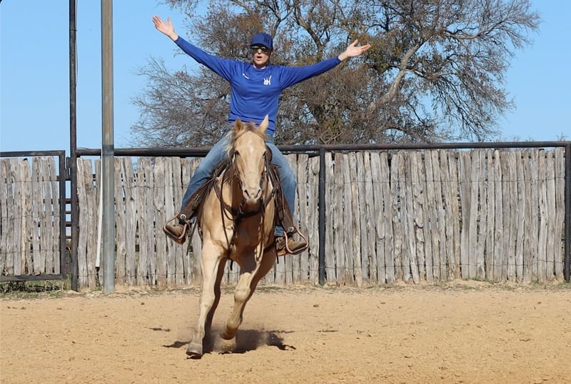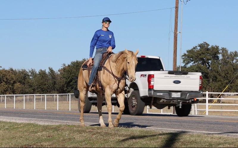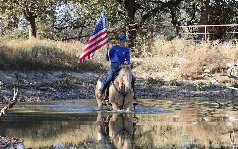 ONLINE AUCTION Place your bids at www.PlatinumEquineAuction.com Starting Bid $3500 Auction ends December 29th, 2024 Need a new saddle? Check out White Rock Saddles on our website or Facebook! Budge is a super unique color and you won’t find another one like him if you go to a parade, trail ride, or any other local event. He is a golden champagne – and he looks a lot like a palomino in his big winter hair, but he still shines and glows even long haired! But… in the summer…. he is absolutely stunning!!! His color is crazy, and so shiny that he almost looks like a mirror – he turns golden, almost metallic colored – very unique!!! You do not see these everyday. Budge is your ride if you’re looking for something simple, no- nonsense, and about as smooth as they come without being a gaited horse! He has an awesome little hobby horse lope, super balanced and easy for anyone. He is uncomplicated to navigate, with a very simple old-school style handle, he neck reins easily and guides wherever you point him. You don’t have to know a lot to ride this one. Budge has been used for riding lessons and is currently being used in our own lesson program. He has taught many kids and novices to ride. When he was younger he was used on a working ranch, and he is very comfortable in the pens and around cattle. If you are looking for one to check your place on and occasionally move a few cows, this guy can do that in his sleep. He has also been to lots of organized trail rides, local 4-H shows and local open shows, play days at the Cowboy Church, and tons of parades. He is very relaxed on trail rides and is exceptionally quiet and relaxed in town. He hops right on the trailer and hauls like a seasoned pro rodeo horse and he backs out relaxed and quietly. He is always happy to go somewhere. He is easy to catch, comes up to you anywhere, gets along well with other horses, is happy in the barn or turned out, he is a very easy keeper, and the type of horse you can leave out for a year and go grab him and hop on and enjoy your ride. Budge has front shoes on, and was just shod last week, and he also had his teeth done by an equine dentist this month. Watch his video and to see additional videos, go to our website: BusterHorses.com or our Facebook page Buster Horses Please call anytime for more information Buster Horses Ashley 214-605-7174 Budge is located in Weatherford, TX – one hour from Dallas / Fort Worth International Airport. He is an easy day trip or fun overnight trip to come try out, from anywhere! We are experienced, knowledgeable sellers, and we can help with quickly arranging affordable shipping to any buyer’s location – we have experience shipping worldwide – including regularly to Hawaii, Canada, Mexico, Europe, and South Africa. Check our website for buyer reviews, more videos, additional info etc: https://busterhorses.com/Budge ONLINE AUCTION Place your bids at www.PlatinumEquineAuction.com Starting Bid $3500 Auction ends December 29th, 2024 Need a new saddle? Check out White Rock Saddles on our website or Facebook!