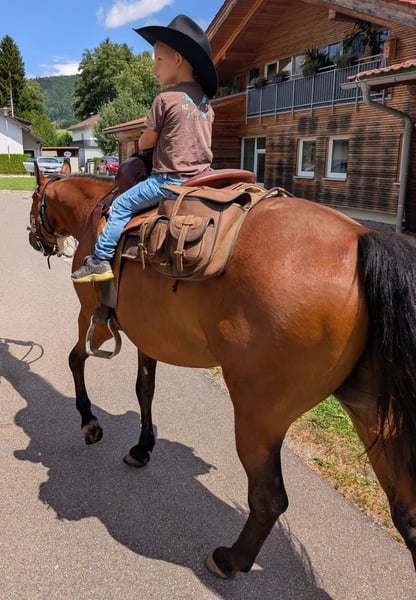 Schweren Herzens: Vielseitiger American Quarter Horse Wallach wegen Auswanderung abzugeben Da wir im Laufe des Jahres nach Südamerika auswandern und ich ihn leider nicht mitnehmen kann, suche ich für meinen American Quarter Horse Wallach (geb. 2009) ein neues, liebevolles Zuhause. Er besticht durch seinen eleganten Braunton und ein sehr korrektes, eher feineres Gebäude – er ist kein „massiger“ Typ, sondern besticht durch Athletik und Ausdruck. Zu seinem Charakter & Ausbildung: Vergangenheit: Er war früher als Turnierpferd erfolgreich und genießt nun sein Leben als zuverlässiges Freizeitpferd. Reitweise: Er ist solide im Western Riding ausgebildet. Er ist wendig, reagiert fein auf Hilfen und behält stets seine ruhige, gelassene Art. Aktueller Trainingsstand: Aufgrund von Zeitmangel im letzten Winter wurde er in letzter Zeit wenig bewegt. Er braucht daher wieder ein wenig Aufbauarbeit, um an seine alte Form anzuknüpfen. Haltung & Umgang: Er ist unkompliziert in der Haltung und kennt sowohl den Offenstall (wo er aktuell steht) als auch die Boxenhaltung im Winter. Im täglichen Umgang ist er ein absoluter Schatz – kooperativ, freundlich und charakterstark. Ob für erfahrene Reiter, die ein feines Pferd suchen, oder für ambitionierte Freizeitreiter, die einen souveränen Partner wollen: Er ist ein echter Allrounder, der für seinen Menschen durchs Feuer geht. Platz vor Preis: Mir ist es wichtig, dass er in gute Hände kommt, wo er wieder die Aufmerksamkeit bekommt, die er verdient. Bei Interesse freue ich mich auf Ihre Nachricht für ein persönliches Kennenlernen!