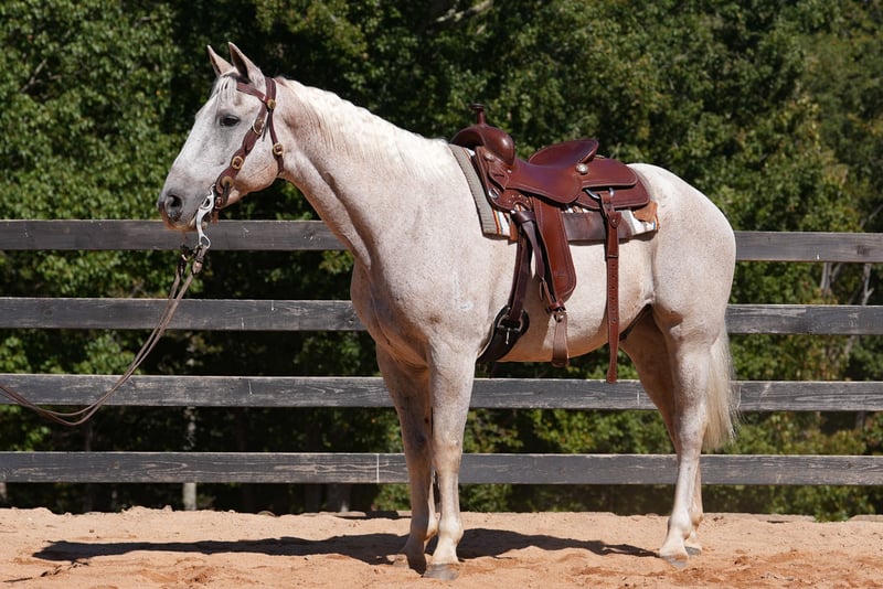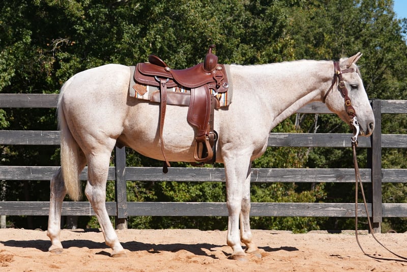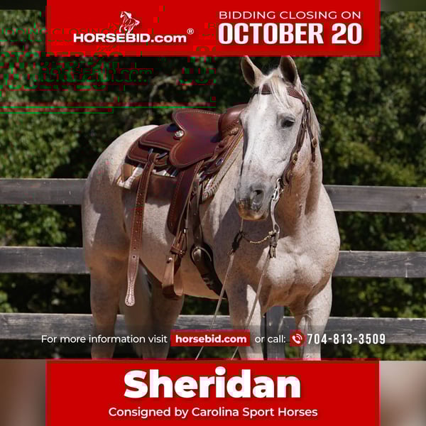 ♦️ 𝐭𝐡𝐞 𝐀𝐌𝐄𝐑𝐈𝐂𝐀𝐍 𝓕𝓪𝓵𝓵 𝓒𝓵𝓪𝓼𝓼𝓲𝓬 ♦️ Happening now thru MONDAY | OCTOBER 20th - Available EXCLUSIVELY on HorseBid's website! For more details and to register visit: www.Horsebid.com CONSIGNOR CONTACT: Carolina Sport Horses 704-813-3509 LOCATION: Clover SC BREED: Quarter Horse REGISTERED: No REGISTERED NAME: Lena from Heaven COLOR: GRAY HEIGHT: 15.2 AGE: 17 GENDER: Gelding Have a piece of Western History on your farm and enjoy telling stories of the real west. The Legendary 6666 Ranch has a slogan….Horses with History, Brands with a background. No Ranch and No Horses are more Western than Quarter Horses off the 6666 Ranch. The Four Sixes is known worldwide, not only as a historic Texas cattle operation but also for producing top-quality American Quarter Horses for western performance and ranch work which are consistently ranked among the best in the breed. The ranch is privileged to stand some of the most well-respected stallions in the industry, and the Four Sixes’ mares form an elite broodmare band that produces some of the top young prospects available, many of which are marketed each year at premier auctions at the ranch and across the country. Everyone wants to know the History of a horse and typically it is at best a guess. Sheridan was named by us after Legendary Director Taylor Sheridan. On the Ranch Sheridan had many jobs. It’s best summed up by the Four Sixes themselves. With rolling hills and rough, rocky terrain, the Four Sixes’ pastures are large. Gathering cattle is not an easy task and requires a talented partner. The cowboys don’t handle and work the cattle with four-wheelers like many people do today. Back when the ranch was established, four-wheelers didn’t exist, so the necessity transcended over the years into having these really good cow horses to do the work, and we have developed a breeding program that provides us with just that. (Copied from 6666ranch.com) Sheridan is a SPECIAL horse. He was born and raised on the 6666 Ranch in Texas as seen on TV Shows like Yellowstone! Sheridan has been on our farm as personal horse for years. We have allowed every beginner and guest to ride him. Yes he’s great WTC in the arena but he’s even more talented under saddle. Sheridan is a finished COW HORSE in every since of the word. He can rope, dr cows, push steers and hell probably fix a fence. He has seen a lot and ready for more. He is an older guy but he’s in excellent shape. He does have some basic care but happy to discuss! Sheridan was sold as a 6 yr old in a dispersal sale for north of $30k. He worked cows around the United States at some of the best operations in the nation. The last several years he’s just been a buddy for every beginner on our farm. He is one handed broke and ready to work but he’s happy to pack kids around the ring. He has had injections yearly to keep him happy and I do give him a daily Prevacox pill. He is 17 but he’s in super health. He is a picture of what a well bred Quarter Horse can be. *All of our descriptions are OUR OPINION and ARE NOT FACTS. They represent how the horse responded and behaved while in our care. Horses can change at any time as they are living, breathing animals. There are no warranties expressed or implied via the descriptions above*PLEASE READ OUR BUYERS GUIDE PRIOR TO BUYING OR BIDDING ON ANY HORSE WE HAVE AVAILABLE. Interested in bringing Sheridan home? Give us a call today! Please take the time to read our Buyers Guide to answer any questions or concerns you may have. Contact Us: Call or TEXT 704.249.8500