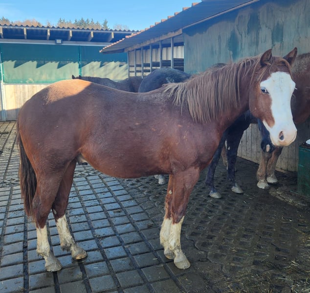 Gunners Fireball ist ein bildhübscher Quarter-/Paint-Hengst, geboren am 20.06.2024, mit einem geschätzten Endmaß von ca. 150 cm. Er hat die auffällige Farbe Sorrel / Sorrel Overo und besticht durch ein blaues und ein braunes Auge. Er ist doppelt registriert bei der American Quarter Horse Association (AQHA) und der American Paint Horse Association (APHA) und besitzt entsprechende Papiere. Gunners Fireball ist sehr korrekt und kompakt gebaut, mit vielversprechenden Proportionen und hervorragenden Bewegungen. Er ist gesund, 6-Panel n/n und wächst artgerecht in einer Herde mit viel Bewegung und Sozialkontakt auf. Dabei darf er unter besten Bedingungen in Ruhe groß werden. Charakterlich überzeugt er durch seine liebenswerte, menschenbezogene und aufgeschlossene Art. Er zeigt sich interessiert, lernwillig, unkompliziert und sehr kooperativ im Umgang. Das Handling ist bereits jetzt angenehm und einfach. Er kennt das Fohlen-ABC und ist halfterführig. Dank seiner Top-Reining-Abstammung bietet er beste Voraussetzungen für eine spätere Karriere im Reining Showbereich oder als anspruchsvolles Freizeitpferd. Sein Vater ist der erfolgreich geshowte Masked Gunman (LTE: über 40000 EUR), die Mutter ist eine Jac O Rima Tochter, ebenfalls erfolgreich geshowt). Einbezahlt bei der NRHA Germany. Der Hengst ist ein vielversprechendes Nachwuchspferd mit vielseitigen Einsatzmöglichkeiten und großem sportlichem Potenzial. Futurity Prospect. Gunners Fireball wird ausschließlich wegen eines Umzugs abgegeben.