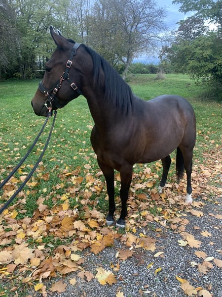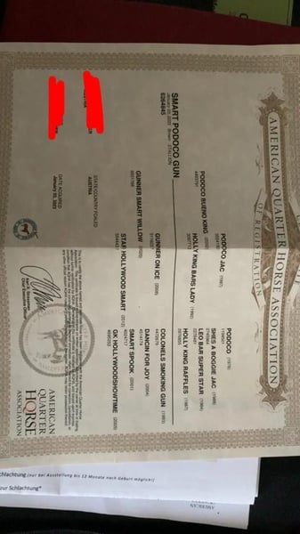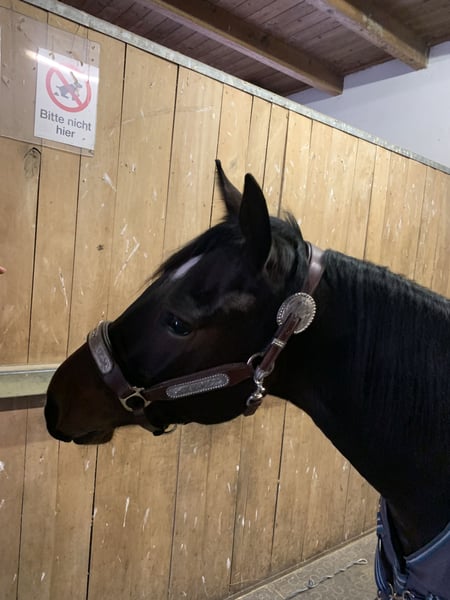 ✨Smart Podoco Gun✨ Schweren Herzens suche ich für meinen geliebten Wallach, aus persönlichen Gründen die ich Privat erzählen kann, ein neues zuhause.🥺 (dringend) 🐴geb. 03.01.2023 🐴American Quarter Horse 🐴Wallach 🐴5 Panel n/n Ich habe ihn mit 10 Monaten von einer sehr netten Züchterin gekauft. Da durfte er schon Traktoren, Kinder, Hunde, Katzen usw. kennenlernen. Beim Tierarzt👩🏻⚕️ ist er stehts immer sehr brav. Zeigt sich immer neugierig und gelassen. Beim Hufschmied⚒️ auch sehr sehr brav. Er mag sehr gerne die Hufschmiedin mal zu ärgern mit knabbern, schlecken und bussi geben. Ansonsten Hufe geben kein Problem. Beim Anhänger🚗 fahren steigt er brav ein und fahrt brav mit. Er braucht jedoch seine zeit zum austeigen da er gerne beobachtet was passiert und mal aufgeregt ist bei neuer Umgebung. 🦄Sein Wesen: -Neugierig -Verspielt -Aufmerksam -Sozial (will mit jedem Tier spielen/freunde sein) -Anhänglich auch mal ungeduldig 🍀Was ich mir für ihn wünsche: -Liebevolles zuhause -Liebe -Geduld -Abwechslungsreiche Arbeit (Spazieren, Bodenarbeit, Equikinetik usw.) -Feste Routine -Vertrauen ❌Was ich mir für ihn besten falls nicht wünsche: -Weiter Verkauf -Schulbetrieb -Stress Er wird von mir als roh Diamant verkauft da er nur im Schritt und Trab angeritten ist. Gallop wurde einmal an der Lounge und einmal frei gemacht, das er sehr gut gemeistert hat. 2 Ausritte im Schritt hat er auch schon gemacht. Dabei war er sehr neugierig, hat viel geguckt was passiert und stets vorsichtig. 📍AT🇦🇹 7000 Eisenstadt 9.🥕🥕🥕 mit gesamten Equipment (Baumsoler sattel, Zaumzeuge, Bosal, Zusatzfutter, Pad, Decke, Halfter uvm.)