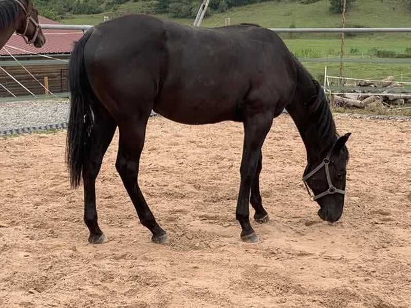 Hier trifft Foundation mit Performance aufeinander in wunderschöner Optik Black solid . Eines geniale Pedigree was keine Wünsche offen lässt, Namen wie Spookeroo Blue Joker- Best Spook (Opa), Custom Crome , Mr. Clyde Hancock , Bueno Ann Moon, Bull Parker sind in ihm vereint. Sehr menschenbezogen und im Umgang super einfach. Schmied / verladen/ Weide/ Stall. Kann alleine bleiben( kein Kleber) 1,45 Stockmaß , Endmaß ca.1,49- 1,51 m Alle Impfungen Regelmäßig dem Schmied vorgestellt In/Exterieur Vorzüglich registrierter AQHA Man kann sich keinen besseren Start wünschen als den diesem netten Pferd. Ist artgerecht gehalten worden.
