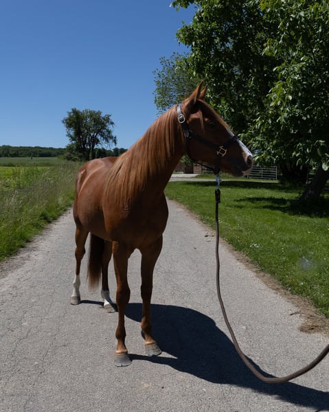 À vendre (en mandat) : ce joli hongre Quarter Horse de 2 ans, nommé « RN DIAMOND JOY », surnommé « Diamond ». Il mesure actuellement 1,47 m et devrait encore grandir, comme en témoignent déjà ses longues jambes ! Il possède de très belles allures, est vif et montre dès maintenant un bon équilibre au trot et au galop pour son âge. Il est naturellement pieds nus et apprend actuellement les bases du poulain/jeune cheval. Il connaît : - Le pansage à l’attache - La remise des pieds - La douche - Le brossage - Le selle - Le travail à pied - La promenade - Le travail en main en extérieur - La ferrure Il est très gentil en main et fait preuve d’un fort désir de plaire. Il est prêt à être visité et deviendra sûrement un partenaire très fiable, que ce soit pour le sport ou la balade. Il possède des papiers AQHA, un test ADN à 7 panels ainsi qu’un passeport européen. Des vidéos de lui en mouvement peuvent volontiers être envoyées.