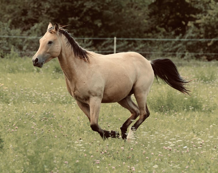 Kräftiger, sehr kompakter buckskin Quarter Horse Wallach