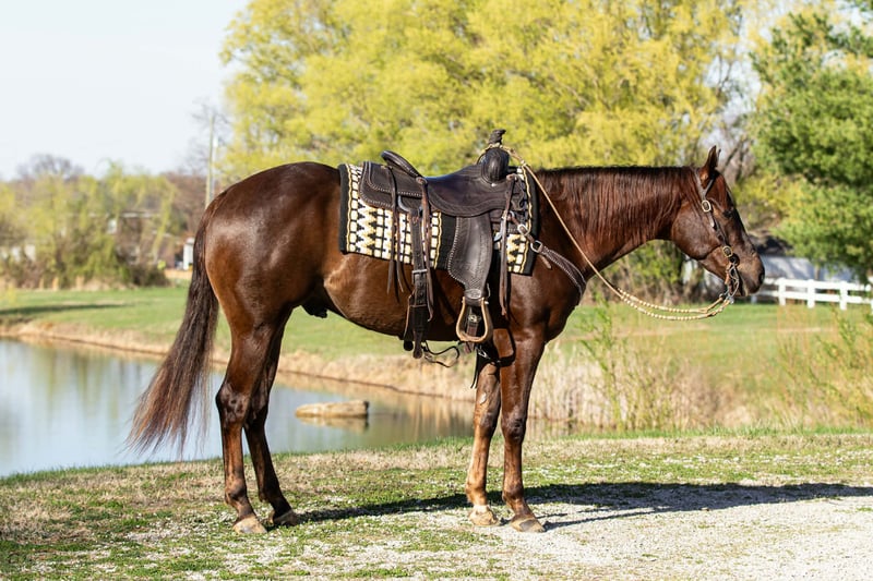 ⚜️𝓽𝓱𝓮 𝐆𝐎𝐋𝐃 𝓢𝓮𝓵𝓮𝓬𝓽⚜️ Happening now thru MONDAY | MARCH 23rd - Available EXCLUSIVELY on HorseBid's website! For more details and to register visit: www.Horsebid.com CONSIGNOR CONTACT: Pleasant Valley Equine 434-981-3863 LOCATION: Robards, KY BREED: Quarter Horse REGISTERED: Yes REGISTERED NAME: Dillons Gonna Dual COLOR: Chestnut HEIGHT: 15 AGE: 3 GENDER: Gelding Where do I even begin with this phenomenal horse? Cowboy has been with me since he was a two year old, and from day one he has proven to be something special. He was one of the easiest colts I’ve ever started, truly an old soul in a young horse’s body. From his very first ride, Cowboy has been incredibly receptive to his training and has continued to progress with a willing, level-headed attitude. He’s the kind of horse that wants to learn and always tries to please. There isn’t anything that rattles him, he has been exposed to a wide variety of situations and handles new environments with confidence. Cowboy checks all the boxes: looks, conformation, and trainability. He has a big personality and a presence that turns heads wherever he goes. He has been hauled and shown since he was a yearling and has already traveled many miles in his young lifetime. Cowboy was shown at the Iowa, & Indiana Ranch Horse Futurity this past year. Collecting points in Ranch Riding, In-hand Trail & cleaned house in the Halter. Cowboy is eligible for the IQHA Ranch Horse Futurity & Ranch Horse Extravaganza. Buy him & continue his show career. In addition to arena work, Cowboy has been extensively trail ridden and has completed a thorough desensitization and obstacle program making him a confident and versatile partner. Under saddle, Cowboy is soft, collected, and balanced. He has beautiful lead departures, fluent rollbacks, correct side passes, and smooth, comfortable gait transitions that make it feel like your riding a seasoned ranch horse. He stands perfectly for mounting, clipping, the farrier, and bathing, and is an absolute pleasure to have around the barn. Cowboy is 100% sound with clean legs and a long future ahead of him. Whether you’re looking for a horse for the arena, ranch work, trail riding, Cowboy has the foundation and mindset to excel in any direction of your choosing.
