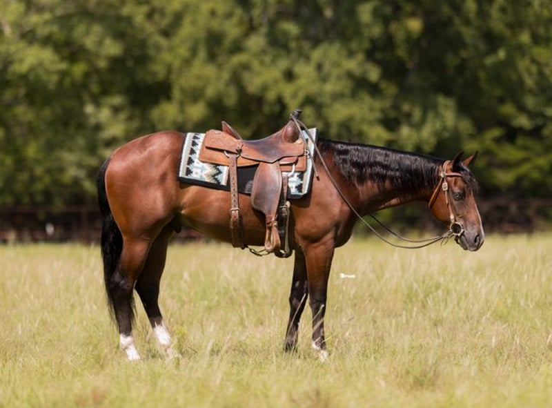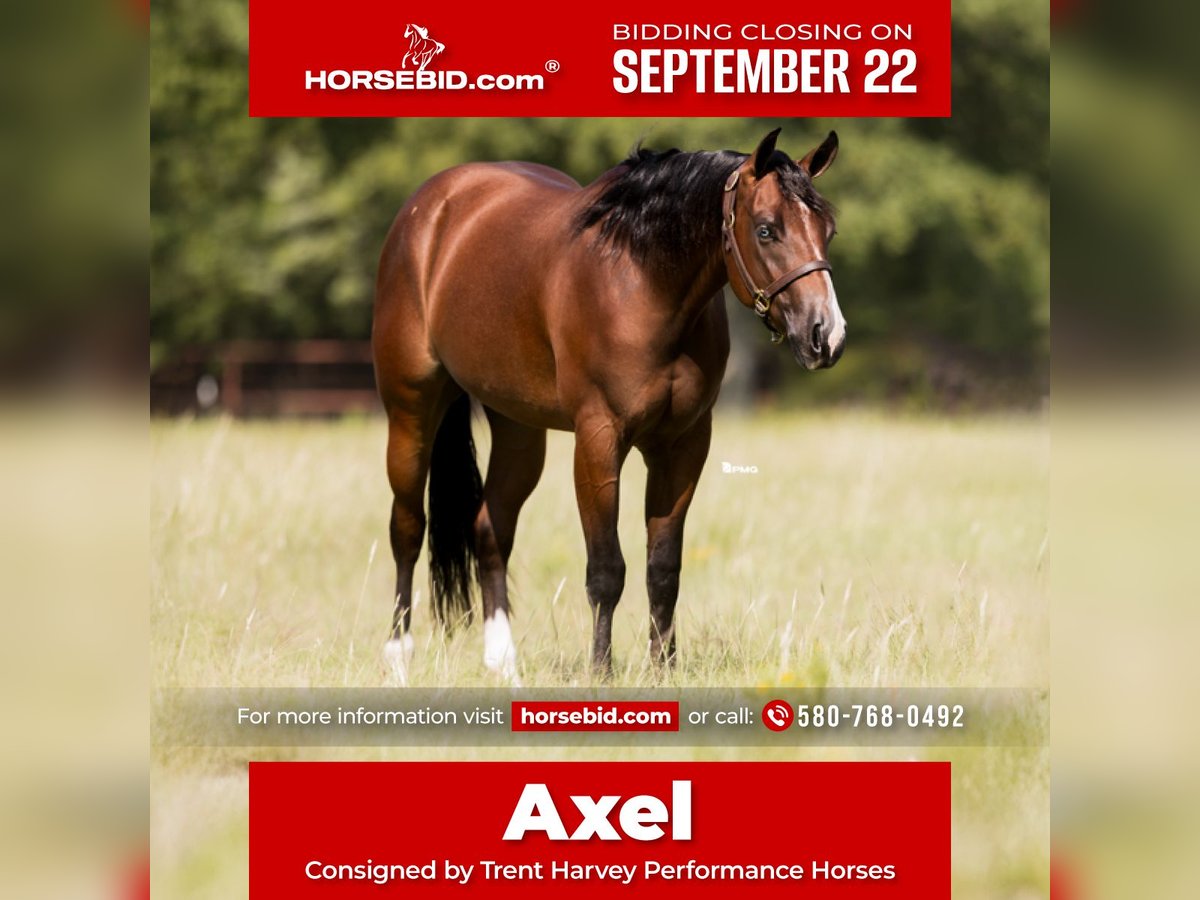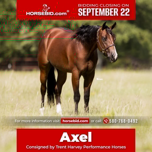 🍁𝒕𝒉𝒆 𝐅𝐀𝐋𝐋 𝑺𝒑𝒆𝒄𝒕𝒂𝒄𝒖𝒍𝒂𝒓🍁 Happening now thru MONDAY | SEPTEMBER 22nd - Available EXCLUSIVELY on HorseBid's website! For more details and to register visit: www.Horsebid.com CONSIGNOR CONTACT: Trent Harvey Performance Horses 580-768-0492 LOCATION: Marietta, OK BREED: AQHA REGISTERED: Yes REGISTERED NAME: Thee Witcher COLOR: Bay HEIGHT: 15.2 AGE: 2 GENDER: Gelding Meet Axel Axel is as great-minded as they come. Show him something once, and he’s got it down—this gelding is a quick learner and a total barn favorite. His fun, friendly personality makes him a joy to be around, and he’s always eager to please. We’ve taken Axel out to gather cattle, ride trails through creeks and brush, cross logs, and wade through water—he does it all with ease. Standing 15.2 hands, Axel is ready to drag calves to the fire, check fences, and be your go-to partner on the ranch. His long, ground-covering trot and smooth lope will also make him a standout in the ranch riding pen. He’s confident over obstacles and always willing, with the kind of eye-catching look that will turn judges’ heads. Axel’s pedigree is just as impressive as his skills. He’s sired by the legendary Tricked Out Spook, an earner of $71,000 and producer of foals with over $600,000 in earnings. His dam, Mistress With Money, is by the $3 million sire Nu Chex To Cash, known for producing greats like Lil Joe Cash and Big Chex To Cash. If you’re looking for a versatile, talented, and personable gelding with proven bloodlines, Axel is the total package.