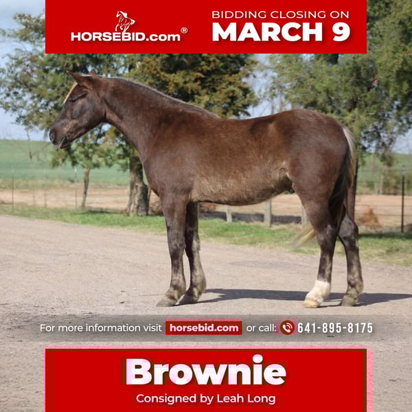 ℳ𝒶𝓇𝒸𝒽 ♦️𝐑𝐈𝐃𝐄𝐑'𝐒 𝐂𝐇𝐎𝐈𝐂𝐄♦️ Happening now thru MONDAY | MARCH 9th - Available EXCLUSIVELY on HorseBid's website! For more details and to register visit: www.Horsebid.com CONSIGNOR CONTACT: Leah Long 641-895-8175 LOCATION: Sulphur Springs, TX BREED: QH REGISTERED: No REGISTERED NAME: Brownie COLOR: Chocolate Palomino HEIGHT: 13.3 AGE: 4 GENDER: Gelding Brownie is a 4 year old chocolate palomino gelding standing 13.3 hands tall. He is cute as a button, super friendly and loves attention. Brownies the first to greet you in the pasture and is easy to catch. I have a lot of favorites but Brownie puts the topping on the cake! In the arena, down the trail, through town- he is safe, super smooth, and sane! He stands tied, tacks up easy, stands to be mounted, and loads great! He is 100% sound and has no vices! Out on the trail Brownie is sure footed and quietly crosses anything you put in his path weather that be deep water, big logs, or steep ditches. He does not spook at wildlife and rides quietly down the trail the entire time! In the arena Brownie walks, trots, and lopes correctly and takes his leads great. He collects up in the bridle and rides like a big horse. He will cross the tarp and carry the flag as well. I could also see him being a cool little cross country pony for someone as we have jumped him a couple of times as well! We have roped and drug calves on him a handful of times and he handled it great. This is someone’s chance to have a super fancy pony that could go any direction! Feel free to give me a call at 641-895-8175 I would love to talk about Brownie!
