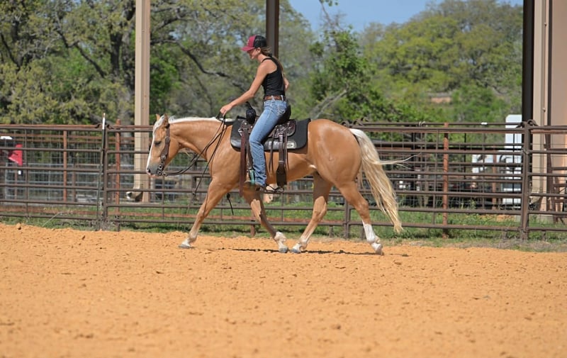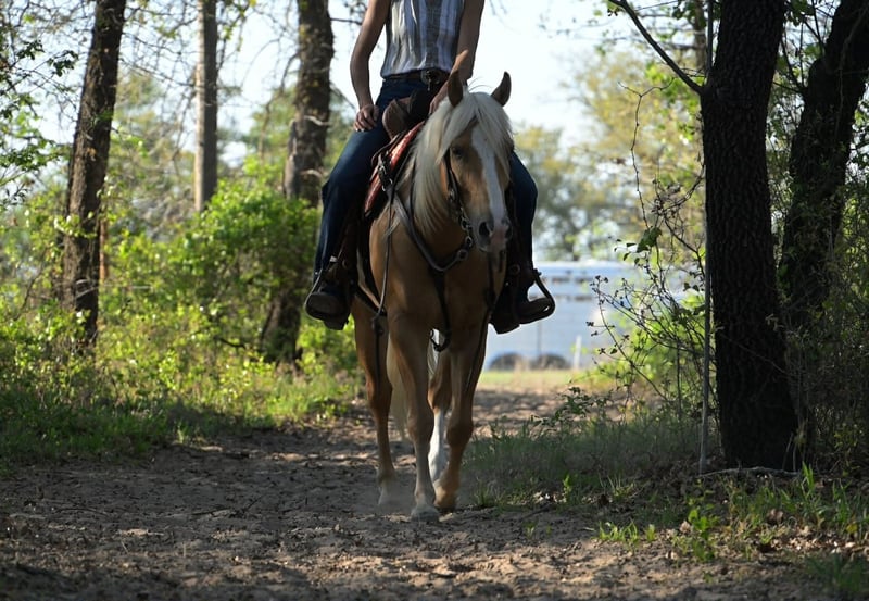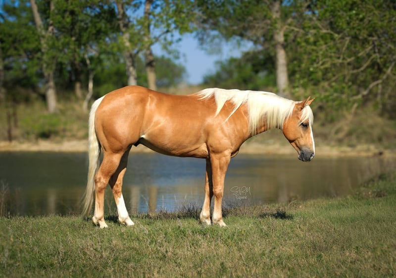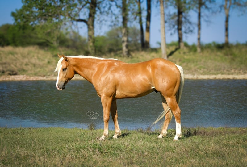 "AVAILABLE ON ONLINE HORSE AUCTION AT www DOT PlatinumEquineAuction DOT com BIDDING OPEN NOW thru SUNDAY | APRIL 19TH! *Final price will be determined on auction site* CONSIGNOR CONTACT INFO: SRM Equine 309-678-7521 LOCATION: Stephenville, TX Buckwheat Man, oh man! It’s our great pleasure to introduce you to WTWE Frenchmen Do, affectionately known around the barn as Buckwheat or even Sweet Buckwheat to some. They don’t come any cuter, flashy, or easy going than Mr Buckwheat! Standing 14 hands even, this guy is the perfect size for both children and adults. His beautiful golden coat and thick, long, white mane and tail make people do double takes EVERYWHERE HE GOES. He is so cute! It’s not just his color that’s catching eyes though. Buckwheat has a sweet little jog and short lope but will also extend when asked. This guy has a beautiful disposition, big hip, soft, kind eye, and a gorgeous head full of brains. That’s the key, right?! His pedigree speaks for itself! As an own son of Cat Man Do and a great grandson of Woody Be Tuff AND Frenchmans Guy, this guy was born to perform! Buckwheat has been such a dream to work with and have in our barn. He’s such an easy horse to be around that it’s easy to get spoiled with him. He stalls well, gets along next to anyone both in stalls and turn out lots, stands tied quiet as a church mouse both at home and out at new places. Vets, baths, saddling, trimming, hauling, none of it is a big deal for Buckwheat. He stands quietly for all of the above as well as loads and unloads easily. Now, let’s get to more of this guys actual resume! Last fall Buckwheat took on a new roll and learned the ins and outs of breakaway roping with Destinee Wofford. In this position his bloodlines really showed up and showed out! He showed us just how quick and athletic he was and impressed many. Staying calm and flat in the box, yet fast and to his spot when asked, Buckwheat showed that he absolutely could have a future in breakaway. Next in his career, Buckwheat learned the barrel pattern. His athleticism really showed here as well, as he picked up on barrels like it was just another day in the office. We love a well rounded horse so most recently Buckwheat has been working on perfecting his fancy handle. He is super easy to ride and has all the buttons one could ask for. Buckwheat stays soft in the bridle, breaks at the pole, picks up his rib cage, pivots on both ends, pretty much any tool you might need, it’s been installed. New environments are no big deal for Buckwheat making him a dream to haul. On the trail he will confidently lead the pack, follow behind, stick in the middle or even ride off by himself if asked. He’s not phased by the tarp, flag, barrels, or any of that odd ball stuff that might be spooky. Buckwheat has been used to pony colts but also doesn’t mind to be ponied himself and does great in both positions. Take the time to watch his video and you’ll get to see just how incredible this guy is. If that doesn’t do it for you, come on out and meet him! We would love to have you! We’re located in Stephenville, Texas. Please give Shelby a call at 309-678-7521 to discuss more about Buckwheat.