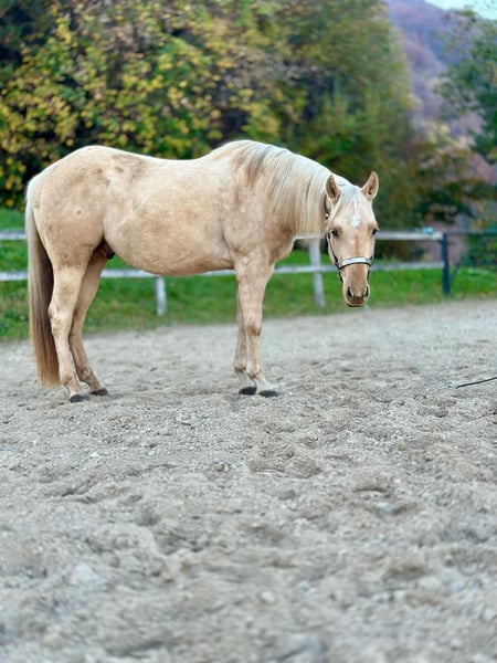 For Sale: Beautiful 2021 American Quarter Horse Gelding Born in 2021, this gentle gelding stands approximately 145 cm tall. Ideal for Western riding, he exhibits excellent manners and a calm temperament, making him suitable for riders of various experience levels. His athletic build and friendly disposition promise a rewarding partnership whether you're into trail riding or training. Don't miss the opportunity to own this exceptional horse. Contact us today to learn more and arrange a visit!