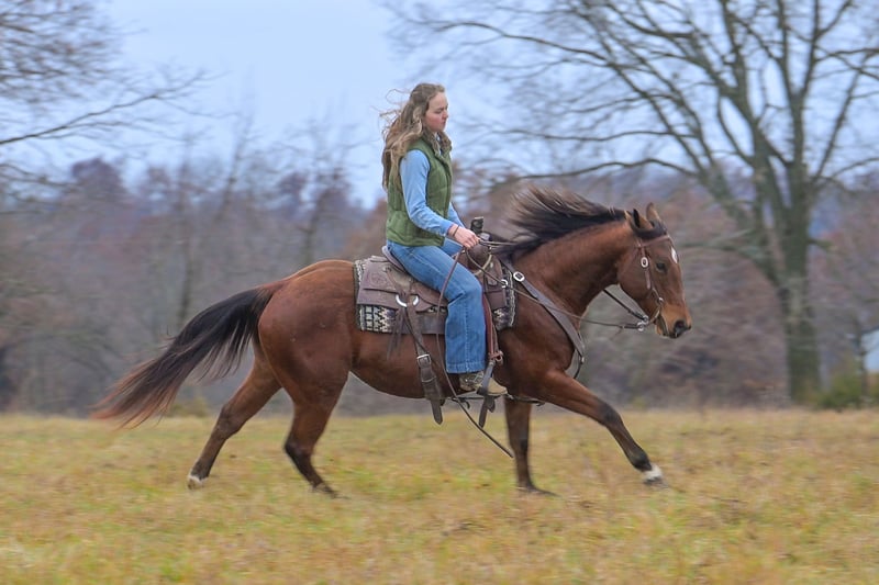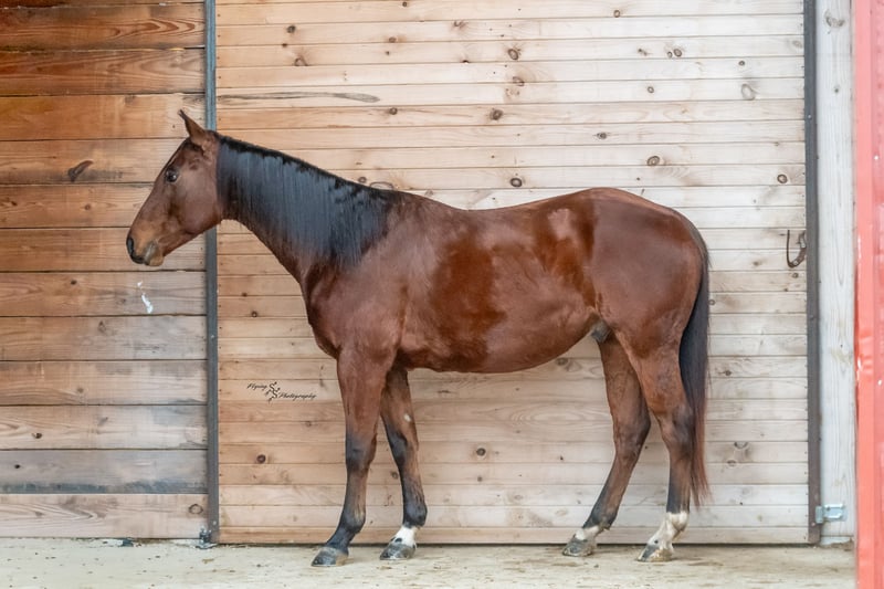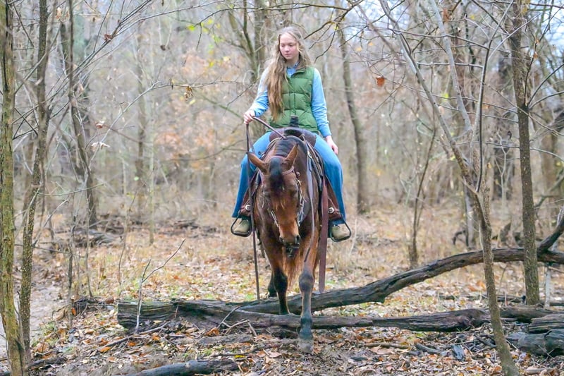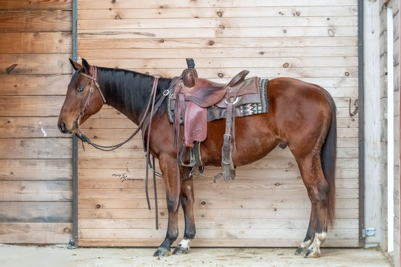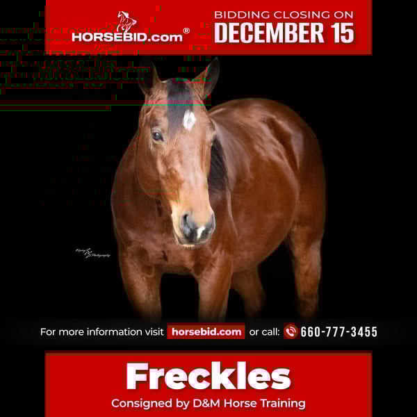 🎄𝐓𝐇𝐄 𝑯𝒐𝒍𝒊𝒅𝒂𝒚 𝐂𝐋𝐀𝐒𝐒𝐈𝐂🎄 Happening now thru MONDAY | DECEMBER 15th - Available EXCLUSIVELY on HorseBid's website! For more details and to register visit: www.Horsebid.com CONSIGNOR CONTACT: D&M Horse Training 660-777-3455 LOCATION: Keytesville, MO BREED: Quarter Horse REGISTERED: Yes REGISTERED NAME: Freckles Superstar COLOR: Bay HEIGHT: 14.2 AGE: 4 GENDER: Gelding Safe, sound, and backed by a 10-day guarantee! Freckles is a very quiet gelding that has been a pleasure to train. He is a fantastic trail horse and is a great fit for the entire family. If you can hold the reins, you can ride freckles! Above all, he is safe and takes care of his rider. You can expect an honest ride from him every time you step into the saddle, even after extended time off. Freckles has been used to trail ride and has been used to pasture rope. He has been in my program for over 5 months, where he has been given periods of extended time off. We are confident in his training and love his disposition. Freckles' manners are excellent whether you are on the ground or in the saddle. He truly aims to please and is a pleasure to be around. Freckles lopes nice circles, correctly taking his leads on cue. He has a nice stop, and is very soft in the bridle with a true one-handed neck rein. He will side pass, work a gate, cross downed timber, walk through water without hesitation or avoidance, and has great agility when maneuvering in mud or uneven footing. He is used to cattle, small livestock, other horses, small pets, children, traffic, even farm equipment and semis! Freckles is the type that is more whoa than go; but if you ask him, he is willing to work for you. With more training, he has all of the ability to be a low-level heel horse. Our favorite thing about him is how genuine, dependable and easy going he is! During his photo session, we were able to do everything without a halter or string on him - he is that honest. Freckles is easy to shoe, easy to bathe, and stands quietly to be braided/groomed and tacked, loads and hauls easily, and will back out of a trailer. When turned out, he gets along well whether he is alone or with pasture mates. Freckles also stalls well. He is fairly easy to catch when he is turned out and is very easy to catch with feed. He is absolutely safe for any age or level of rider! Freckles comes with a 10-day guarantee, because we are confident that you will love him. We are more than happy to help you arrange a pre-purchase exam if needed. If interested in meeting Freckles or if you have any questions prior to the auction ending, please call Dannie at 660-777-3455.