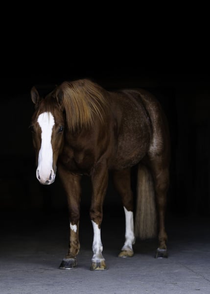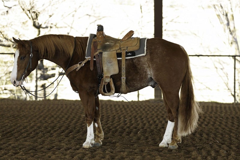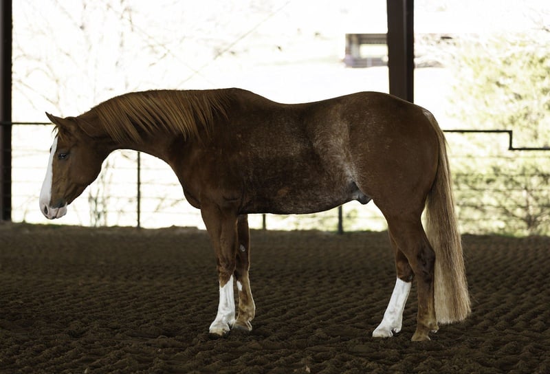 TIMEBOMB, 4 jaar oud, 14.3 hh, rood-roan AQHA-ruin