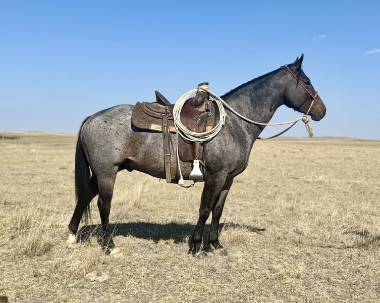 🍂 𝓐𝓾𝓽𝓾𝓶𝓷 𝑨𝑳𝑳 𝑺𝑻𝑨𝑹 𝑳𝑰𝑵𝑬𝑼𝑷 🍂 Happening now thru MONDAY | OCTOBER 6th - Available EXCLUSIVELY on HorseBid's website! For more details and to register visit: www.Horsebid.com CONSIGNOR CONTACT: Jeremy James 406-781-2227 LOCATION: Power, MT BREED: Quarter horse REGISTERED: Yes REGISTERED NAME: ROLLING POCO ROCCO COLOR: Bay roan HEIGHT: 15 AGE: 4 GENDER: Gelding ROLLING POCO ROCCO Meet Rocco. He is a 2021 AQHA gelding standing at 15 hands. This stout flashy fella is calm minded and very patient. He is perfect for beginners, fun for intermediate riders and solid for advanced riders. Rocco is ranch raised and has been around cattle his whole life. He moves cattle or horses on a regular basis. He knows his job when he gets into a branding pen, his presence is steady in the stressful environment. He does well for young learners as he is very patient. Not much upsets Rocco. He makes a great horse for lessons with the right balance of whoa and go if you are unsure of your riding abilities. He is great at boosting the confidence of any rider. Rocco does not hesitate with any challenge given to him. He crosses water easily and adapts to any terrain in front of him. You can open and close gates off of him, side pass with ease and he has perfect manners on the ground. Rocco is easy to catch, very gentle, stands quiet for saddling, mounting and he is excellent for the farrier. He is a gentleman to load, unload backing out and haul in the trailer. He doesn’t bat an eye having to work on his own, and he works well around other horses. Rocco is eager to please and has an honest heart. He will make a fantastic addition to any family! Rocco is located in Power, Montana - we are happy to help get you in contact with transportation for across the country. For more information call Melissa James at 406-781-2227