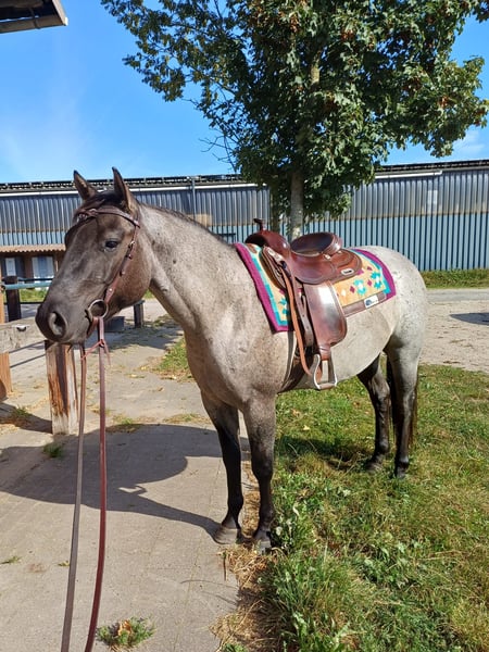 4-jähriger Quarter Horse Wallach in Grullo Roan zu verkaufen. Er hat ein ruhiges, unerschrockenes Gemüt, ist angeritten und sehr brav unterm Sattel. Allerdings fehlt ihm noch jegliche Ausbildung unterm Sattel. Geht allein ins Gelände. Er ist Offenstallhaltung gewöhnt und sehr sozialverträglich. Läuft barhuf, wurde regelmäßig geimpft und entwurmt sowie Zähne gemacht. Er hat nach einer Verletzung am rechten Auge einen kleinen Schönheitsfehler, der keine Probleme macht (siehe letzte Bilder). Er ist über die Eltern 5 Panel NN IMM NN MYH1 NN PSSM2 NN Ein Pferd zum Liebhaben und Selbstausbilden! Leider fehlt mir die Zeit, ihn zu fördern.