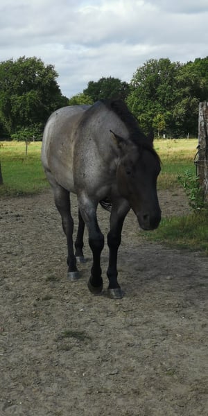 4-jarige Quarter Horse ruin in Grullo Roan te koop. Hij heeft een rustig, onbevangen karakter, is onder het zadel en zeer braaf. Gaat alleen het terrein in. Hij is gewend aan een open stal en is zeer sociaal. Hij loopt zonder ijzers, is regelmatig gevaccineerd en ontwormd en heeft zijn tanden laten doen. Hij heeft een klein schoonheidsfoutje aan het rechteroog, wat geen problemen oplevert. Een paard om van te houden en zelf op te leiden! Helaas ontbreekt het me aan tijd om hem verder te ontwikkelen.