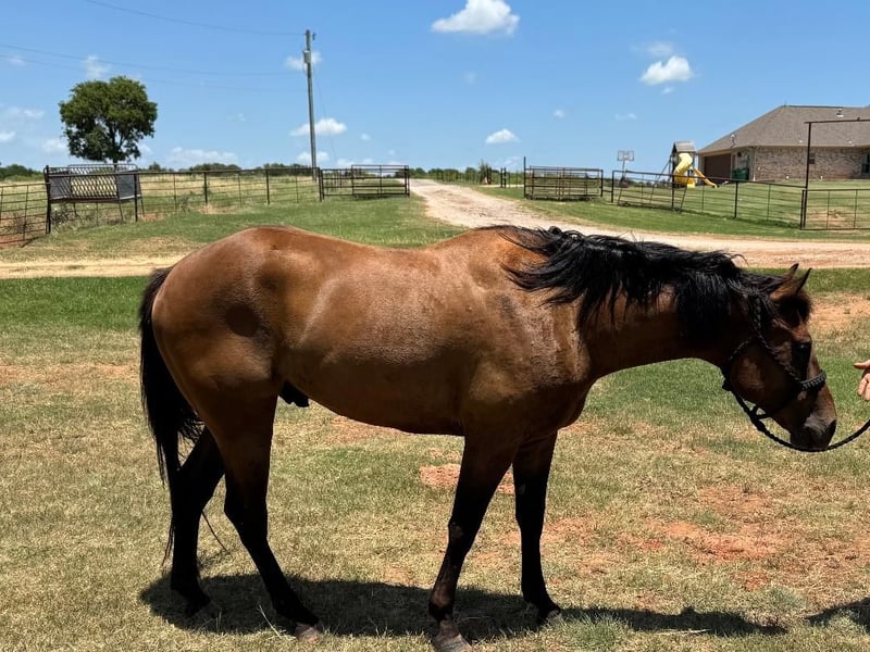 "AVAILABLE ON ONLINE HORSE AUCTION AT www DOT MagicHorseAuction DOT com BIDDING OPEN NOW thru TUESDAY | JULY 8th - BUY IT NOW AVAILABLE! *Final price will be determined on auction site* CONSIGNOR CONTACT INFO: Dustin Jackson 940-631-5245 LOCATION: Henrietta, TX 15.2, 4 year old Bay Gelding by Mechanic - (AQHA WORLD CHAMPION - HIGH POINT PLEASURE STALLION and Top 10 AQHA World Champion Reserve Congress Champion High Point Western Pleasure Stallion in the Nation). In the barn, his name is Tyrone. Tyrone had a late start to his training but is catching up quickly. With only 75 days training, he is showing all the athleticism needed to make an outstanding trail horse and could easily go on with his training and go to the show pen. He has pulled logs and tires around and could be used as a ranch horse. He has the size and the bone to go with it. He is laid back and has a good demeanor. He stands to be tied and picks up all feet. He is super easy to catch and loves a good scratch. He is 100% Sound! This gelding will make someone a great horse in the future. he has a great start to go any direction that you wanted to. Located in Henrietta, TX.