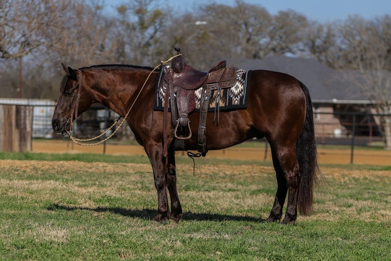 ⚜️𝓽𝓱𝓮 𝐆𝐎𝐋𝐃 𝓢𝓮𝓵𝓮𝓬𝓽⚜️ Happening now thru MONDAY | MARCH 23rd - Available EXCLUSIVELY on HorseBid's website! For more details and to register visit: www.Horsebid.com CONSIGNOR CONTACT: Hailey Hutchison 682-459-7115 LOCATION: Joshua, TX BREED: Quarter Horse REGISTERED: Yes REGISTERED NAME: Mr. Magic COLOR: Brown HEIGHT: 14.2 AGE: 5 GENDER: Gelding Mr. Magic is a 5-year-old , standing 14.2 hands tall, and a stunning brown gelding that will leave an ever lasting impression! Gentle to the core, with an exceptionally kind, willing mind that makes him a joy both in and out of the saddle. With his incredibly affectionate personality and kind soul, he will quickly steal your heart. Fancy broke, honest, steady, safe, dependable and quiet-minded — he’s the kind of gelding everyone searches for, but never finds! Bred, raised, and trained by one family and he was started in their reining program, making me the second owner. I have owned him the last 7 months, and throughly enjoyed every single day with him. Magic is soft, collected, and stays nicely behind the bridle. Magic has easy transitions, smooth gaits, lead changes, good turnarounds and stop. Lopes the prettiest- steady circles in the arena, handles the ball, flag, and tarp with ease. English, western, bareback, single, or double — he takes care of his rider every step of the way. Magic has been hauled and exposed to a variety of atmospheres including the Fort Worth Stockyards, downtown streets, parks, ropings, and miles of trails and pasture riding. Laid back disposition and remains calm, steady, and reliable wherever you take him. Magic will make a wonderful addition to any family! Would excel in the Versatility Ranch Horse classes, or simply enjoy him out on the trails. No matter what you decided to do with him, he will make you happy. It is difficult to describe how truly wonderful Magic is, I personally invite everyone out to meet him for yourself. Sells sound and up to date on coggins, dental, farrier, and deworming.