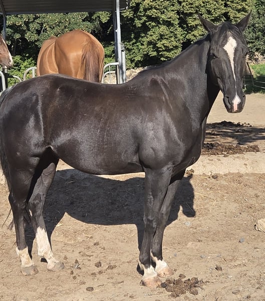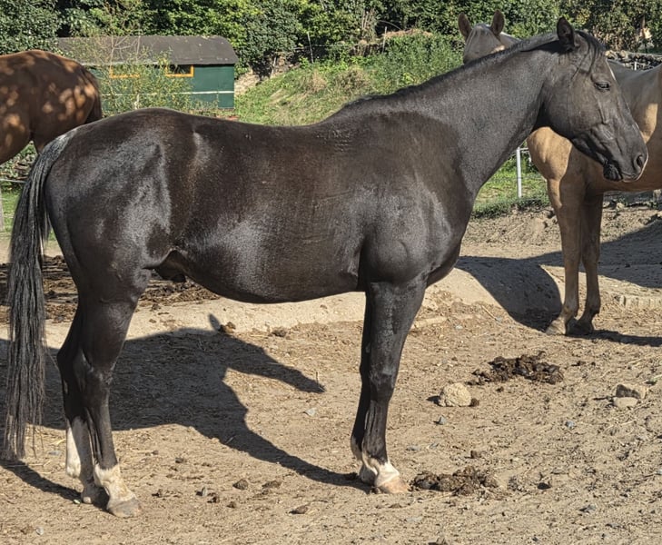 Rooster King Leo - ein bildschöner Quarter Horse Wallach, geboren im März 2020. Mit seiner eleganten schwarzen Farbe, einem kompakten, korrekten Gebäude und einem besonders ausdrucksstarken Auftreten zieht er sofort die Blicke auf sich. Er misst etwa 147 cm und überzeugt nicht nur äußerlich, sondern auch mit einem feinen, sensiblen Charakter. Poldi ist sehr menschenbezogen, verschmust, neugierig und reagiert ausgesprochen gut auf Stimme und Körpersprache. Gleichzeitig bringt er eine gewisse Sensibilität mit und braucht daher eine feste, vertrauensvolle Bezugsperson. Für Anfänger ist er nicht geeignet - gesucht wird ein erfahrener, ruhiger Pferdemensch, der ohne Druck, aber mit Einfühlungsvermögen und Geduld mit ihm arbeitet. Poldi bringt eine solide Westerngrundausbildung mit, kennt die Bodenarbeit und wurde zuletzt mit Bosal geritten. Da er im vergangenen Jahr nur sporadisch gearbeitet wurde, befindet er sich aktuell nicht im Training und muss muskulär wieder aufgebaut werden. Er wurde regelmäßig geimpft und entwurmt, ist derzeit barhuf und schmiede- sowie verladefromm. Poldi kennt sowohl Offenstall- als auch Boxenhaltung und steht aktuell in einer gemischten Herde im Offenstall. Er war bislang immer gesund. Eine klinische Ankaufsuntersuchung aus Juni 2024 liegt vor - mit dem einzigen Befund eines leichten Überbisses, der ihn bislang nicht beeinträchtigt. Röntgenbilder der Sprunggelenke aus demselben Zeitraum sind unauffällig. Die Zähne wurden zuletzt im April 2025 gemacht. Poldi wird schweren Herzens abgegeben, da seine jetzige Besitzerin ihm unter dem Sattel nicht die Sicherheit geben kann, die er braucht. Er eignet sich ideal für jemanden, der bereit ist, mit Ruhe und Gefühl eine vertrauensvolle Partnerschaft aufzubauen und das Potenzial dieses besonderen Pferdes weiter zu fördern.