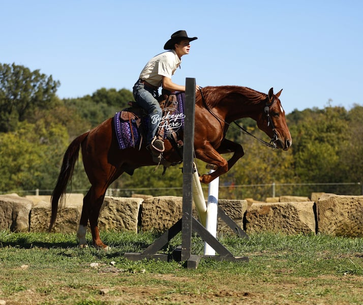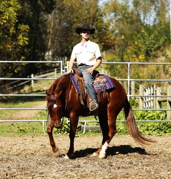 Sierra is the gelding who makes riding effortlessly, fun, and safe for everyone. This 2021 AQHA sorrel gelding standing 15 hands with good conformation, a bright eye, a star and snip on his face, and a white hind sock. With breeding going back to Hall of Fame High Brow Cat, Sierra combines pedigree, talent, and versatility like few others. There is very little this outstanding gelding has not experienced. He has been a trusted ranch-hand, worked cattle, competed in obstacle courses, and been part of countless ranch tasks. Sierra is a true anyone-can-ride horse, perfect for beginners, seniors, and advanced riders alike. He knows his leads, executes smooth lead changes, spins, and can perform sliding stops when asked. Sierra’s gaits and transitions are smooth and effortless—from walk, trot, extended trot, to canter—and he maintains consistency even if he has not ridden every day. He has traveled miles of trails, crossed streams, navigated uphill and downhill terrain, and checked fence lines with confidence. His calm and smart personality makes him a joy to ride in almost any situation. Whether in an indoor or outdoor arena, ridden western, English, bareback, or neck-reined, Sierra adapts like a pro to every rider. Children can enjoy him safely, while adults can trust him for serious ranch or show work. Walk to the barn, and you’ll never get tired of seeing that pretty head, bright eye, star, and snip looking at you, ready to be your equine friend. He has a genuine want-to-please attitude and meets you at the gate every time. Sierra is also very versatile. He has experience in ranch competitions, trail riding, arena work, obstacle courses, and even checking cows along fence lines. He is not only a talented performer but also a dependable partner for any day-to-day ranch or farm work. He does not require constant riding to stay sharp, making him perfect for busy families or riders with multiple horses. Up to date on vaccinations, deworming, and shoeing, Sierra has been Nate’s go-to horse for any job that needs doing. He is a safe, dependable, and incredibly talented gelding who will make a rider of any level feel confident and connected. If you are looking for a horse with talent, brains, heart, and personality, Sierra is the one you have been searching for. For more information or to schedule a visit, call Duane at 330-231-2324.