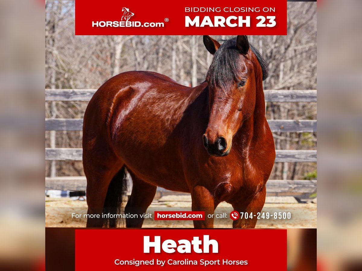 ⚜️𝓽𝓱𝓮 𝐆𝐎𝐋𝐃 𝓢𝓮𝓵𝓮𝓬𝓽⚜️ Happening now thru MONDAY | MARCH 23rd - Available EXCLUSIVELY on HorseBid's website! For more details and to register visit: www.Horsebid.com CONSIGNOR CONTACT: Carolina Sport Horses 704-249-8500 LOCATION: Clover, SC BREED: Quarter Horse x Morgan REGISTERED: No COLOR: Bay HEIGHT: 15.1 AGE: 5 GENDER: Gelding 🐴 HEATH – Stunning to Look At. Steady to Ride. Heath is a 5-year-old Draft cross with a deep bay coat that stops people in their tracks. He has the kind of presence that turns heads — substantial, athletic, and beautifully put together. But what makes Heath special isn’t just how he looks. It’s how safe he feels. And if you’ve been around horses long enough, you know that beauty without a good mind doesn’t mean much. Especially when you’re not 25 anymore. Especially if you’ve had one that shook your confidence. Especially if you’re buying for your family. The fears are always the same: What if he’s too young? What if he gets strong? What if he spooks? What if I don’t have the brakes when I need them? Heath quiets those questions. Though only five, he carries himself with maturity and steadiness beyond his years. He does not rush. He does not overreact. He gives his rider time to think. He stands quietly to mount. He walks off relaxed. He transitions smoothly. He listens. And when we say he is calm — we mean it. He may very well be one of the safest horses we have offered in years. He is comfortable fox hunting, happy to step into the show ring, and steady enough to be a family horse for children. That kind of versatility only comes from the right mind — not just training. He even knows fun, crowd-pleasing tricks like laying down — but he never feels silly or unpredictable. Everything he does is deliberate and controlled. For parents who worry about safety… For riders rebuilding confidence… For families wanting one horse everyone can enjoy… Heath offers something that cannot be overstated: Consistency. He rides the same day after day. He handles new environments with composure. He does not escalate energy when others do. He is not here to test you. He is here to take care of you. For the rider who wants stunning looks without stress… Athletic ability without anxiety… And a partner the entire family can trust… Heath delivers something more valuable than flash. He delivers peace of mind. *All horses at CSH enjoy 24/7 turnout with a mixed herd when not in training. Training weeks they spend 3 days inside for work and 3 days off to relax. We do not feed grain but the horses to have 24/7 access to premium western alfalfa. All horses are up to date with vaccinations and worming. They are all on a 6 week farrier rotation as well and some are shod due to our rocky trails. We only train in a loose ring snaffle in western tack and a loose ring, French link or full cheek snaffle in English. Feel free to call or text me with any questions about horse care or training.* *All of our descriptions are OUR OPINION and ARE NOT FACTS. They represent how the horse responded and behaved while in our care. Horses can change at any time as they are living, breathing animals. There are no warranties expressed or implied via the descriptions above*PLEASE READ OUR BUYERS GUIDE PRIOR TO BUYING OR BIDDING ON ANY HORSE WE HAVE AVAILABLE. Interested in bringing home? Give us a call today! Please take the time to read our Buyers Guide to answer any questions or concerns you may have. Contact Us Call or TEXT 704.249.8500