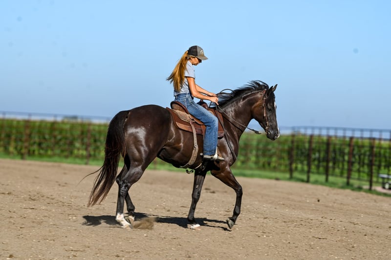 ♦️ 𝐭𝐡𝐞 𝐀𝐌𝐄𝐑𝐈𝐂𝐀𝐍 𝓕𝓪𝓵𝓵 𝓒𝓵𝓪𝓼𝓼𝓲𝓬 ♦️ Happening now thru MONDAY | OCTOBER 20th - Available EXCLUSIVELY on HorseBid's website! For more details and to register visit: www.Horsebid.com CONSIGNOR CONTACT: Brianna Lynch 605-777-5883 LOCATION: Canistota, SD BREED: AQHA REGISTERED: Yes REGISTERED NAME: Tequila Gooberlips COLOR: BLACK HEIGHT: 16 AGE: 4 GENDER: Gelding This one is tall, dark, and handsome! “Icon" has been around our place since the beginning of his three-year-old year and we purchased him straight from his breeder. Bri spent all last year getting him fancy broke, exposing him to the ranch life, and started on the barrels. This gelding is very sweet on the ground and gentle to be around! Icon’s blood is infused with talent and run. He is an own son of NFR qualifier and money earner: KR Famous Tequila who won over $100,000. He was a Canadian Finals qualifier and money earner and AQHA world show bronze place winner. KR is by #1 all barrel horse sire: Dash Ta Fame. Dash Ta Fame is a $39 million sire! KR is out of a daughter of the legendary Chicks Beduino. Icon’s dam is an own daughter of $24 million sire: Ivory James. Icon is very broke in the arena- he will ride in the bridle, move his body parts, counter-arc, and drag his butt. He is broke when you pick him up and ask him to move over, make a turn, or pull him in the ground. Icon can seriously stop- he leaves 11s in the ground ALL the time. He is very responsive with hand and leg cues. Icon has been used to sort cattle and help break roping steers in on the heel side (leaving the box and pushing the steer up the rope). He will absolutely cow up to a steer. Icon loves to trail ride! Ride him out alone with no fuss and take him for a swim! This guy loves the water! We have even ridden him under English tack and man does he wear it well! This guy is a beautiful mover!! He absolutely floats across the ground Needless to say, this guy has had a great, well-rounded foundation. Icon has gotten very solid on the barrels. Spent a lot of time on slow and correct with this guy. For being a running bred horse, he is always ready to turn! That being said, he also has a LOT of run to him. This guy can FLY. He has a really cool feel around a barrel and tries hard. Icon will be ready to enter in no time. Icon is 16 hh, coal black, and 100% sound. Vet checks are welcome at buyers’ expense. Feel free to come try him out! We are located by Sioux Falls, SD. We can help arrange shipping worldwide. Don't miss out on this unique gelding!!