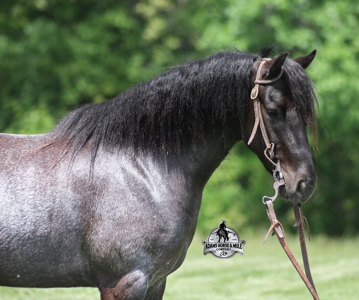 Razz is consigned to the Best Of The West Horse Sale in Gladstone, NJ on September 26-27th. You can bid online or bid in person. There is a preview day before the sale or you can come ride him prior to the sale in Mt. Vernon, KY. Razz is a 13.2h, 4 year old, Gypsy Vanner Cross, True Blue Roan Gelding and if you are looking for a horse that will bring countless smiles, miles of memories and nothing but good times in the saddle… then meet Razz. Razz has been our 7-year-old boys favorite ride all summer long, and he has been tested over and over again, passing with flying colors every time! This guy loves attention and likes to be pampered! From braids to baths, he loves his time with his kids! He is gentle enough for the kids to ride but stout enough to comfortably carry a smaller adult. Razz is a phenomenal trail horse and goes anywhere that he is asked. He has been ridden up/down steep slopes, across creeks, ditches, deadfall, rough rocky areas… you name it, and he can handle it. He rides with confidence, will go out alone, will ride in the front or back of the group and leaves the barn with no issues. Razz is traffic safe and has been ridden through town. He lopes nice circles, takes the correct leads, has a good stop and is easy to operate. In addition to riding western Razz has been ridden English and has been over jumps. He has been ridden around the ranch and through the cows. Razz is a great horse for the whole family to love and enjoy for years to come! For more info call 606-308-2461.
