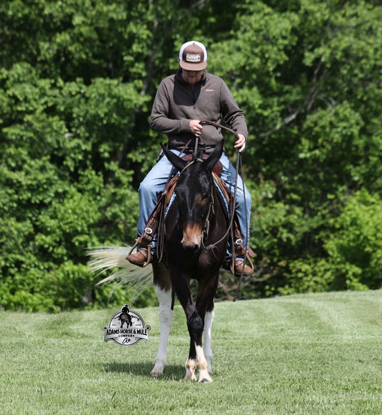 If you are a lifelong mule fan or just looking for your first one… Lariat is the one for you!!! If you want smart, reliable, easy going, user friendly, safe and a best friend… all wrapped into one??? Here he is! Lariat was started and trained by the best in the business when he was two and a half years old and has graduated the natural horsemanship program where he learned several tricks (side passing to a mounting block, laying down for mounting and setting on his rump) doing the natural horsemanship program also allowed Lariat’s personality to shine as he is a total in your pocket kind of fellow and is everyone’s best friend! He is 4 years old, is 15.1h and is well built. Lariat is a mule for all jobs… he is out of a Color Me Smart ($3.6 million sire) bred mare, so he is bred to ride around the ranch and knows cows! Whether you need to head out on the ranch and herd some cattle, need to heel calves and drag them to the branding fire, if you just want to ride some beginner type trails, if you want to go hunting up in the high country of Wyoming or Colorado and tackle the roughest of all trails, if you want to hook up and take a Sunday afternoon carriage ride, maybe you just want a friend to lay down under a shade tree and talk to… Lariat will do it all!!! He is super safe, absolutely no foolishness or bad habits. He is easy with feet and ears. Lariat has been ridden by all ages from 6 to 76 and is 100% safe. On the trails he is great and will cross creeks, ditches, logs and navigate rough, rocky areas. He has been ridden many miles in the mountains of Eastern Kentucky and encountered every obstacle possible on the trails. He has been on several week long camping trips. He has been elk hunting out west and also has been packed. He hauls well and picket line ties and ponies. He will go up or down even the steepest slopes, across deep creeks, over downed trees, and over all types of rough terrain while still being sure footed. Lariat has been ridden at night, lead dogs and been coon hunted off of, gun fire does not bother him. Lariat is fancy broke and well trained! He will one hand rein around, spin circles, side pass and back with ease. He will lope perfect circles and slide stops! He has been exposed to all kinds of wildlife such as deer or turkey and will go anywhere that he is asked too. You will drive the wheels off of a new truck to find one that even close to Lariat, we invite anyone to come see in person just how special he is or we can facetime with you as well. Just give us a call and feel free to call Eric 606-308-2461 with any questions. Go to visit our website for more pics and a video www.AdamsHorseAndMuleCo.com AHAMC has been in the horse business and sold horses over the internet since 2005. We have a long track record of success with hundreds of happy customers. We work hard to match riders with the correct horses and specialize in beginner safe, family friendly horses that have been used and checked out by our family! We can set up transportation anywhere in the US and look forward to working with you.