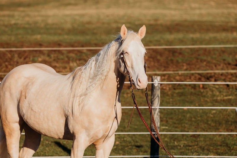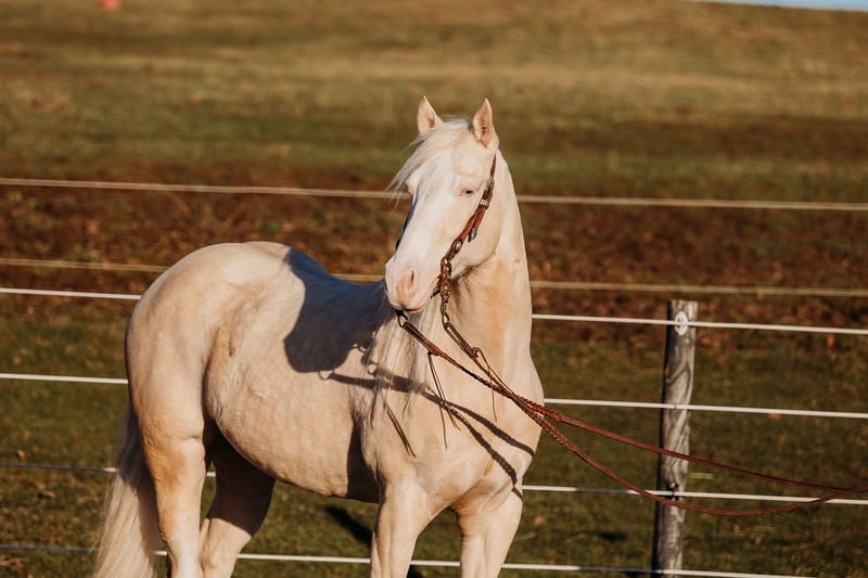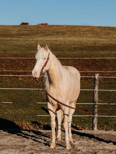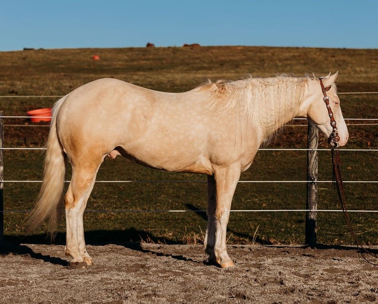 Susan, 6 jaar oud, 14,3 hh Cremello/Licht Palomino AQHA-ruin