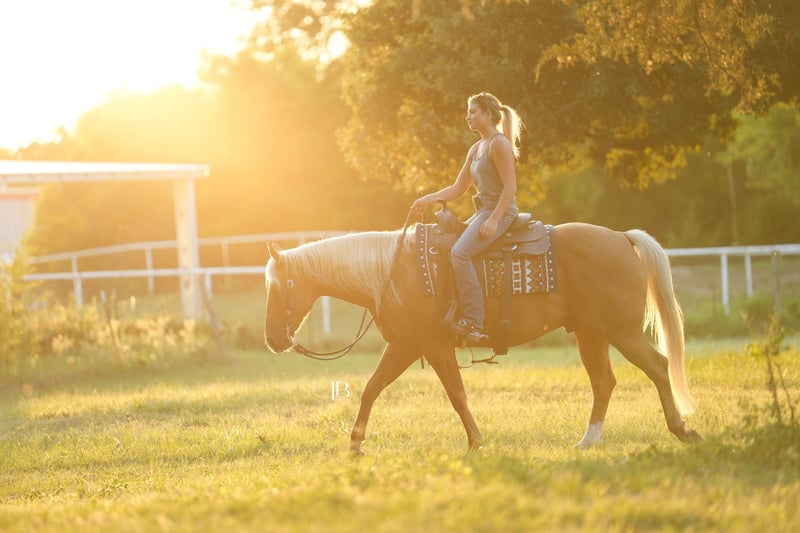 🍂 𝓐𝓾𝓽𝓾𝓶𝓷 𝑨𝑳𝑳 𝑺𝑻𝑨𝑹 𝑳𝑰𝑵𝑬𝑼𝑷 🍂 Happening now thru MONDAY | OCTOBER 6th - Available EXCLUSIVELY on HorseBid's website! For more details and to register visit: www.Horsebid.com CONSIGNOR CONTACT: LB Equine Sales, LLC 214-449-8028 LOCATION: Terrell, TX BREED: AQHA REGISTERED: Yes REGISTERED NAME: Yellowstones Delight COLOR: Palomino HEIGHT: 14.3 AGE: 5 GENDER: Gelding "Meet Charlie – the golden palomino gelding everyone dreams of owning. Charlie checks all the boxes: a friendly, easy-going personality, a quiet and sensible brain, eye-catching good looks, and the perfect size. Whether you’re searching for a safe and steady weekend trail partner, your palomino dream horse, or a versatile show prospect, Charlie is the complete package. This gorgeous gelding is elegant across the ground, consistent in cadence and pace, and eye catching wherever he goes. We’ve had Charlie in our program since May, and he has quickly become our go-to mount for guests and riders of all levels down the trail and in the arena. He has been a great confidence builder down the trail—steady, quiet, and happy to head out on any adventure. Traffic, trains, four-wheelers, cattle, strollers, gunfire, flags—you name it, he takes it in stride. Never worried or fazed by things – he is even forgiving of rider mistake, he stands tied patiently, loads and hauls with ease, and settles right in at new places. He is not easily spooked (as seen in the videos) and can really put up with a lot of commotion! Charlie has been ridden in town, through the Sonic drive-thru, at covered arenas, and across all kinds of terrain. He crosses water, steps carefully over logs, navigates bridges and ravines, and goes out alone or in a group without hesitation. Lead, follow, or fall in the middle—Charlie is content wherever you put him. He’ll happily plod along on a loose rein and wants to be low-headed and relaxed. In the arena, Charlie shows tremendous potential as an all-around show horse. His hack-winning trot and rhythmic canter make him a standout. He’s soft in the bridle, stops off your seat, pivots easily, and carries himself in a beautiful frame. Gentle yet willing, he has the “ready to work” attitude without ever being hot. He could easily shine as a hunter, ranch rider, or all-around mount for anyone. He’s also been used to drag logs, carry flags, had guns shot off him, and ponied other horses—always honest and dependable with any task granted to him. Off property he is a trailer to ring/trail type of ride! He is BRAVE over fences and has a lot of try. Beyond his training, Charlie is a joy to be around. He has a goofy, playful side that makes him easy to love, and his sweet temperament speaks for itself. He wants to be very personable and in your pocket. Prior to joining us, he was a trusted family horse, toted around by little boys—a true testament to his gentle nature. Those boys climbed all over him! He’s excellent to handle, good in a stall, easy to catch (he’ll walk right up and stick his face in the halter), and gets along well in turnout. He can be kept barefoot or shod—sound and sane either way. Up-to-date vet work including coggins, vaccines, dental float, and deworming (all available on our website). Clean radiographs on file to view, along with a recent PPE report – 100% sound. Don’t miss this once-in-a-lifetime gelding—Charlie is the kind everyone wants! He wants to be your favorite buddy and pal. Transportation can be arranged anywhere.