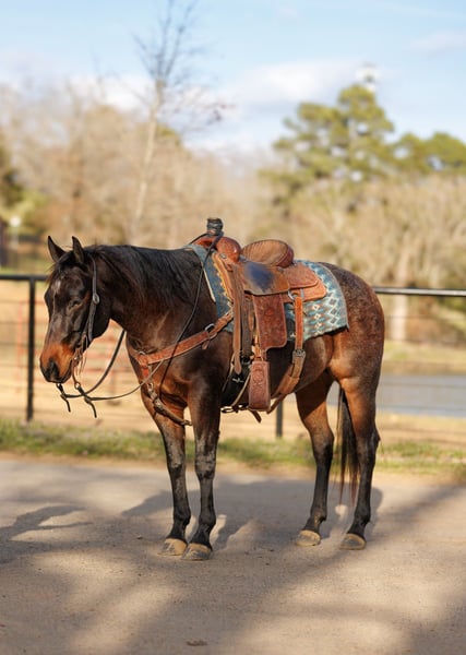 ⚜️𝓽𝓱𝓮 𝐆𝐎𝐋𝐃 𝓢𝓮𝓵𝓮𝓬𝓽⚜️ Happening now thru MONDAY | MARCH 23rd - Available EXCLUSIVELY on HorseBid's website! For more details and to register visit: www.Horsebid.com CONSIGNOR CONTACT: Justin Pruitt 501-287-8904 LOCATION: Greenbrier, AR BREED: AQHA REGISTERED: Yes REGISTERED NAME: TL Mecoms Hickory COLOR: Bay Roan HEIGHT: 14.3 AGE: 6 GENDER: Gelding TL Mecoms Hickory aka “Roscoe” is a 6-year-old bay roan gelding that is the kind the whole family can enjoy. He has a gentle, willing disposition and is safe enough for kids to ride both inside and outside of the arena. He’s the type of horse you can feel confident putting just about anyone on. Outside, Roscoe is as solid as they come. He’s been ridden extensively on the trails and is comfortable traveling through brush, crossing logs, and handling rough terrain without hesitation. He has also spent time in big, rough Montana country gathering and working cattle, proving he’s a dependable horse when there’s a job to do. As a 3-year-old, Roscoe was ridden in a sale barn and feedlot environment where he worked the back pens, giving him plenty of real-world experience around cattle and busy environments. He’s seen a lot and handles new situations with a level head. In the arena, Roscoe has been started in both the heeling and breakaway and is progressing nicely. He is ready for someone to continue hauling him and take him to jackpots in the heeling. With his experience and attitude, he has the foundation to go in several different directions depending on what you want to do with him. Roscoe is easy to be around and simple to handle. He stands quietly to wash, brush, shoe, saddle, and load in the trailer. He has been hauled to a lot of different places and travels well. If you’re looking for a versatile gelding that can go from the ranch to the arena and still be gentle enough for the family, Roscoe is the kind that’s hard to find.