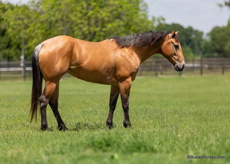 ONLINE AUCTION Place your bids at www.PlatinumEquineAuction.com Starting Bid $3500 Auction ends May 25th, 2025 Need a new saddle? Check out White Rock Saddles on our website or Facebook! Fox has had tons of real working miles outside, she has been worked outside on a big ranch and has tons of miles in the feedlot. She came out of big cattle country, and she has a lot of miles and experience under her belt at only 5 years old and 15hh. This mare acts just like a regular seasoned ranch gelding. She goes anywhere that you point her on a big long relaxed rein and neck reins well. She rides old-school, one-handed broke, very simple and uncomplicated to ride. She takes both leads, turns around both ways, side passes, has a big stop, and works a gate like a pro. She has been roped off a ton outside and in the pens and would be a great prospect that would take quickly to the team roping or the breakaway. She has been ridden outside over all sorts of terrain and knows the deal. She loves the water, and is relaxed handling rough terrain, ditches, rocky footing, and creeks. She is seasoned and confident out on the trail, happy to go out alone, and rides well in a group of horses as well. She could care less if you leave the other horses or leave the barn. This mare is no non-sense, been there, done that and seen that. She was also awesome riding through town and would probably do great at parades or crowded events, she really enjoyed the commotion and all the new things to look at. If you have been looking for a gorgeous gelding and just keep getting outbid…then don’t miss this mare, she’s been used just like a gelding her entire life and is the real deal. Please call anytime if you have any questions about her, Buster Horses Ashley 214-605-7174 Fox is located in Weatherford, TX – one hour from Dallas / Fort Worth International Airport. She is an easy day trip or fun overnight trip to come try out, from anywhere! We are experienced knowledgeable sellers and we can help with quickly arranging affordable shipping to any buyer’s location – we have experience shipping horses worldwide – including regularly to Hawaii, Canada, Mexico, Europe, and South Africa. Go to our Facebook page Buster Ranch and check our website for buyer reviews, for more videos, additional info, etc: https://busterhorses.com/Fox ONLINE AUCTION Place your bids at www.PlatinumEquineAuction.com Starting Bid $3500 Auction ends May 25th, 2025 Need a new saddle? Check out White Rock Saddles on our website or Facebook!