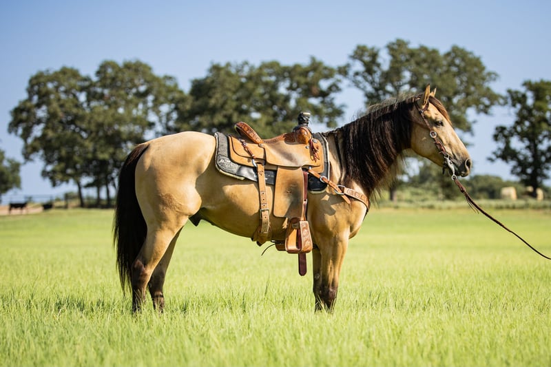 ⭐️ 𝐀𝐔𝐆𝐔𝐒𝐓 𝓐𝓵𝓵 𝓢𝓽𝓪𝓻 𝓛𝓲𝓷𝓮𝓾𝓹 ⭐️ Happening now thru MONDAY | AUGUST 25th - Available EXCLUSIVELY on HorseBid's website! For more details and to register visit: www.Horsebid.com CONSIGNOR CONTACT: Happy Hass Ranch 972-310-8910 LOCATION: Weatherford TX BREED: Qh REGISTERED: No COLOR: Buckskin HEIGHT: 15 AGE: 6 GENDER: Gelding Ez is a 6 yr old rope horse prospect with a long black mane and golden buckskin coat. He’s got the color and the temperament to turn heads. He has had 30 days of professional heeling training and is ready for his next owner to finish him their way! He is great in the box and is not phased or frazzled no matter how many runs you make. Ez is EASY and would be suited for a junior to finish. He has a scar on his back left hoof from an injury 2 years ago. The owners are releasing all vet records on EZ. He has never taken a step wrong and is ready for a job. Here’s your chance at a well minded, “EZ” guy whose flash will get you noticed.