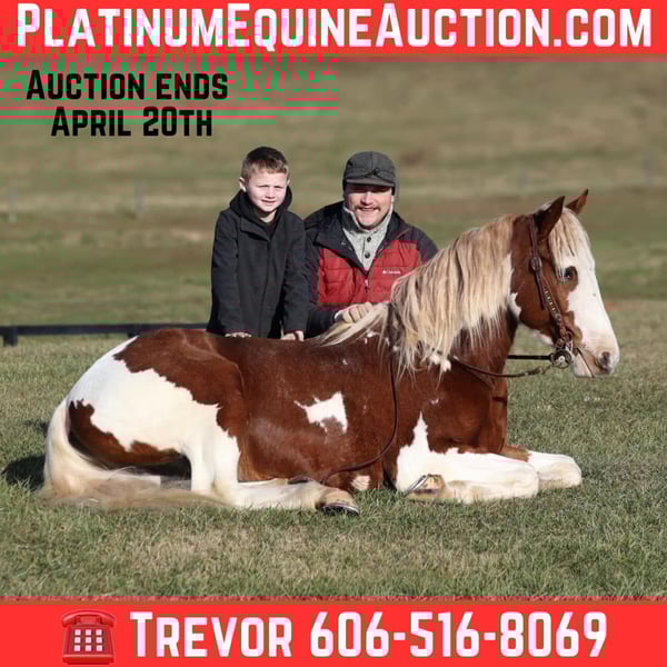 ONLINE AUCTION Place your bids at www.PlatinumEquineAuction.com Starting Bid $3500 Auction ends April 20th, 2025 Need a new saddle? Check out White Rock Saddles on our website or Facebook! Hidalgo is a beautiful chestnut tobiano gelding that is well built, standing around 15hh and he is 5 years old! Hidalgo was raised and trained by one of the best young trainers around. He is very friendly, loves attention and has learned everything the correct way. Hidalgo has done some natural horsemanship training and he knows some tricks as well. He will lay down on command and enjoys nothing better than taking a nap with his best friend. Hidalgo lopes nice circles, catches the correct leads and has a good stop. Hidalgo just eases along down the trail and loves going on trail rides. He will cross creeks, ditches, logs and navigate rough rocky areas. He has been exposed to all kinds of wildlife and will go anywhere that he is asked too. He has been rode many miles in the mountains and encountered every obstacle possible on the trail. He will go up or down even the steepest slopes, across deep creeks, over downed trees, and over all types of rough terrain while still being sure footed. Hidalgo has been ridden down the highways and is traffic safe as well. He has been used around the ranch, he has sorted, penned and pasture roped. If you need a best friend who is broke, quiet, gentle, safe horse for ranch or trails… Hidalgo is your guy! Call Trevor Patrick 606-516-8069 with any questions or to make a Buy It Now Offer. Located in Parkers Lake, KY. ONLINE AUCTION Place your bids at www.PlatinumEquineAuction.com Starting Bid $3500 Auction ends April 20th, 2025 Need a new saddle? Check out White Rock Saddles on our website or Facebook!