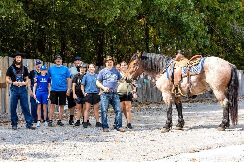 ONLINE AUCTION Place your bids at www.PlatinumEquineAuction.com Starting Bid $3500 Auction ends October 27th, 2024 Need a new saddle? Check out White Rock Saddles on our website or Facebook! Everyone meet Ernie….This absolutely stunning unicorn is what dreams are made of! He is a bay roan Percheron/QH cross standing 15 hands tall and 4 years of age. This is one of the kindest and safest horses to ever come through our program. I truly believe anyone who wants to ride, can ride this horse. He has three soft and easy gaits that are very smooth to ride. Does all of the obstacles out on the trail. Does it all in stride and with ease . Nothing bothers this horse he will go and do anything with no fuss. Has been used at local rodeos to carry the flag at opening ceremony. Also as a pickup horse for youth rodeo. Ernie has been to the little town of Mt. Grove Missouri on his days off. Where he is seeing all the sites around town and entertaining families for pics and rides. He is truly a kind hearted unicorn. We have started him over fences which he enjoys. Please watch our must see video. .You will be entertained for sure.Ernie is totally UTD on farrier,dental,vetting and has all vaccines and necessary paperwork ready to go. Has a clean vet inspection from our licensed veterinarian. We have professional shipper’s that we use. That can haul horses nationwide. Ernie is located in Mountain Grove, MO. We encourage customers to come out and try our horses. Call for more information Beaver Ranch Mike 410-490-7384. ONLINE AUCTION Place your bids at www.PlatinumEquineAuction.com Starting Bid $3500 Auction ends October 27th, 2024 Need a new saddle? Check out White Rock Saddles on our website or Facebook!