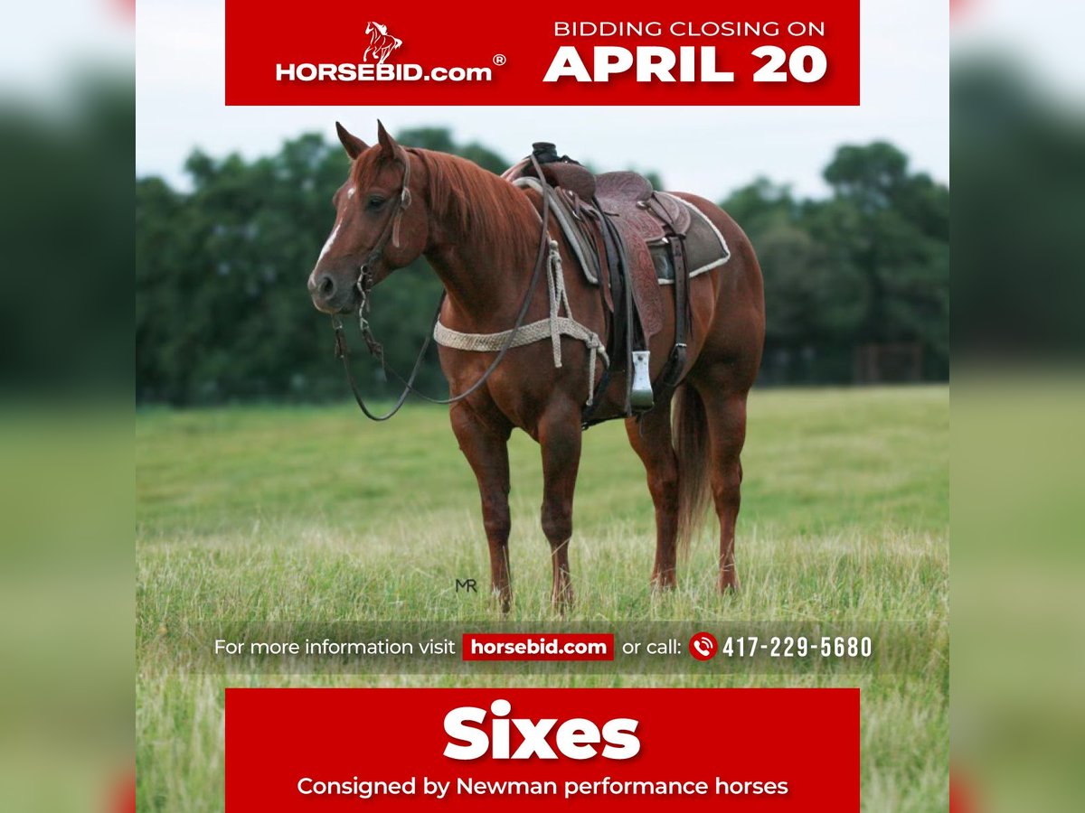 Sixes, 6 jaar oude, 15 hh kastanjebruine AQHA ruin