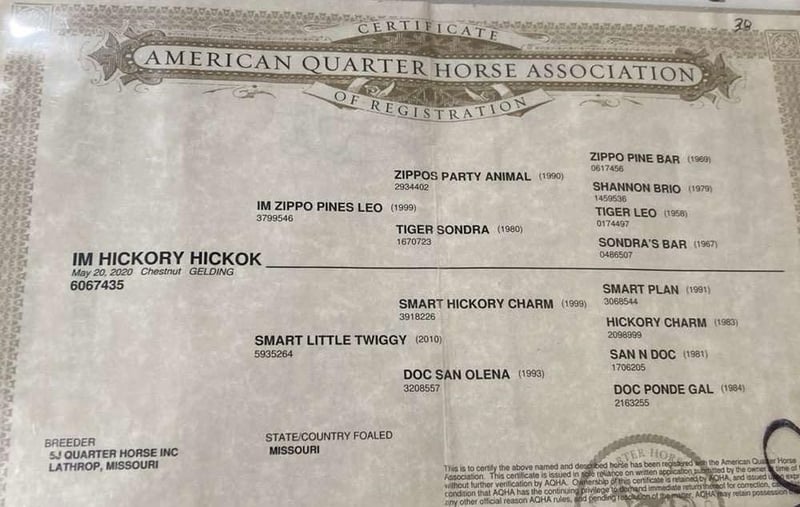 ONLINE AUCTION Place your bids at www.PlatinumEquineAuction.com Starting Bid $3500 Auction ends May 25th, 2025 Need a new saddle? Check out White Rock Saddles on our website or Facebook! Introducing “I’m Hickory Hickok” – The 2020 Registered Gelding That Does It All! Are you searching for a versatile, reliable, and family-friendly horse that excels in various disciplines? Look no further than “I’m Hickory Hickok,” a stunning 2020 registered gelding standing 15:1HH with the skills, training, and gentle temperament to be your ultimate equine partner. Versatility Defined: Hickory isn’t just a pretty face; he’s a true all-rounder. He’s equally comfortable and capable whether you’re: Exploring the Trails: Enjoy leisurely rides through scenic landscapes. Hickory is sure-footed, brave, and loves to explore. Putting in a Hard Day’s Work: Need a partner for ranch work? Hickory is reliable, responsive, and ready to tackle any task you throw his way. Working Cows: Hickory has a natural aptitude for working cattle, with the agility and cow sense to excel in sorting, penning, and more. Roping: Whether you’re a seasoned roper or just starting out, Hickory has the speed, stamina, and training to help you reach your goals. Family-Friendly Temperament: Beyond his impressive skills, Hickory is known for his gentle and patient demeanor. He’s safe and suitable for riders of all ages and experience levels, making him the perfect addition to any family. Don’t Miss Your Chance: “I’m Hickory Hickok” is more than just a horse; he’s a partner, a friend, and a member of the family. Don’t miss this opportunity to own a truly exceptional equine companion. Contact us today to learn more, schedule a visit, and experience the magic of Hickory firsthand. Call Alexis Mantonya 660-438-0306 with any questions. Located in Cole Camp, MO. ONLINE AUCTION Place your bids at www.PlatinumEquineAuction.com Starting Bid $3500 Auction ends May 25th, 2025 Need a new saddle? Check out White Rock Saddles on our website or Facebook!