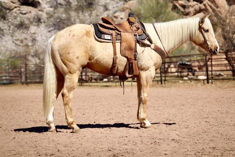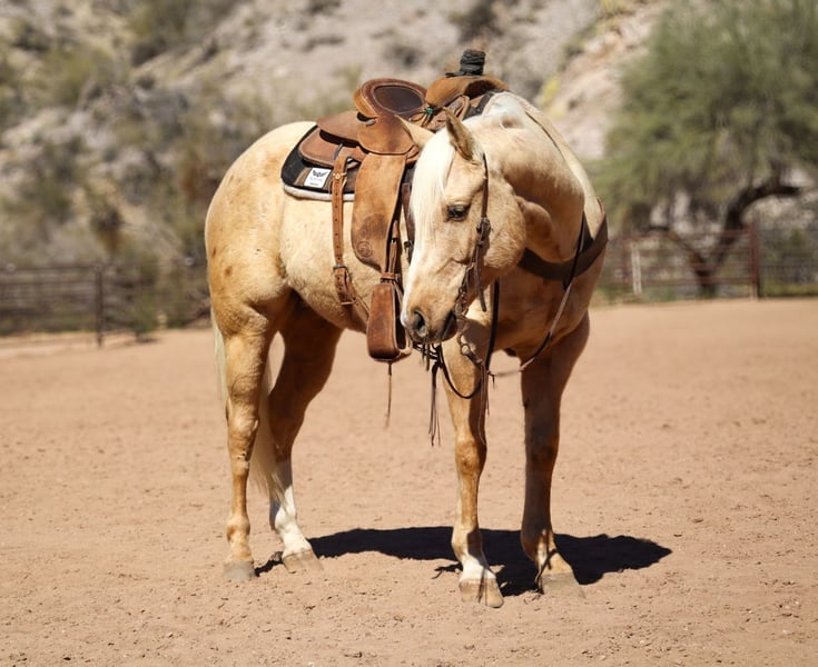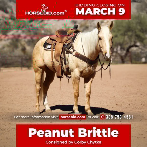 ℳ𝒶𝓇𝒸𝒽 ♦️𝐑𝐈𝐃𝐄𝐑'𝐒 𝐂𝐇𝐎𝐈𝐂𝐄♦️ Happening now thru MONDAY | MARCH 9th - Available EXCLUSIVELY on HorseBid's website! For more details and to register visit: www.Horsebid.com CONSIGNOR CONTACT: Corby Chytka 308-750-4561 LOCATION: Wickenburg, AZ BREED: Quarter Horse REGISTERED: Yes REGISTERED NAME: Golden Diamon Jack COLOR: Palomino HEIGHT: 15.1 AGE: 6 GENDER: Gelding Peanut Brittle - 6 year old AQHA gelding. Stands 15.1 We have been riding this horse for several months now. He is any easy mover and has now developed skills where we could see him going in any direction. He does have an old wire cut scar on his right hind leg but it does not bother him. He has exposure to ranch and arena work. Outside riding seems therapeutic to him. He will trail behind any horse and isn’t pushy but will also ride off by himself with his head down and doesn’t spook. He has a good start roping live cattle on both the heading and heeling side. When he is in the box, he is looking for the cow before the gate even opens. He has the willingness and athleticism to excel on either end. Peanut brittle is going to make a great prospect for his future owner! He loves baths and being pampered. He is the horse that is going to take you wherever the wind blows and will look good doing it. So, if it’s being competitive in the arena or trail riding on a Sunday he will be your guy!