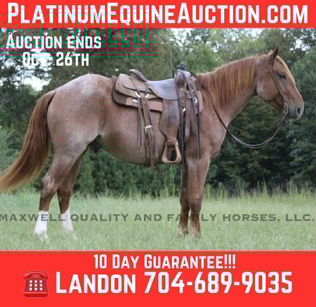 ONLINE AUCTION Place your bids at www.PlatinumEquineAuction.com Starting Bid $3500 Auction ends October 26th, 2025 Need a new saddle? Check out White Rock Saddles on our website or Facebook This is the horse that DREAMS ARE MADE OF!!! We are confident in that so he is being sold with a 10 day money back guarantee! Nacho is a 5 yr old, 15.1h, Quarter horse draft cross gelding! He is broke to ride and drive! He’s SAFE for any level of rider to ride him or drive. Nacho is gentle, easy going, friendly and is sure to build his riders confidence levels! He goes English or Western and has a beautiful Walk/Trot/Canter! He stands great for the farrier and is also veet friendly. We have trail ridden Nacho many miles and he has been ridden in several states. He crosses anything from creeks, to ditches, rough terrain, deadfall… or anything in his path and isn’t spooky at new encounters. Tarps, balls, flags, etc. he has seen them all and does all the tricks. He stays level headed and has more woah than go. Nacho has the sweetest personality, he’s always the first one to the gate! If you’re looking to make a fancy show horse or just an absolutely gentle weekend trail horse, Nacho is your man! • 100% sound and sane! • Located in Cherryville NC affordable shipping anywhere! • Contact Landon Maxwell at 704-689-9035 ONLINE AUCTION Place your bids at www.PlatinumEquineAuction.com Starting Bid $3500 Auction ends October 26th, 2025 Need a new saddle? Check out White Rock Saddles on our website or Facebook