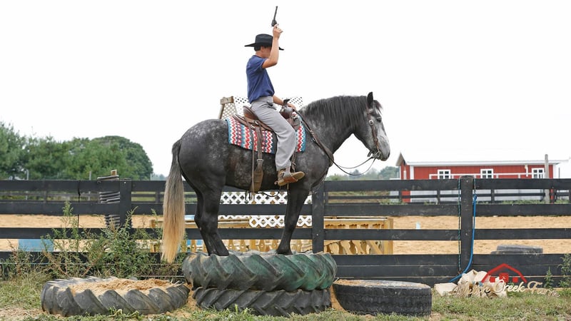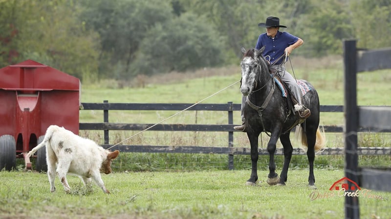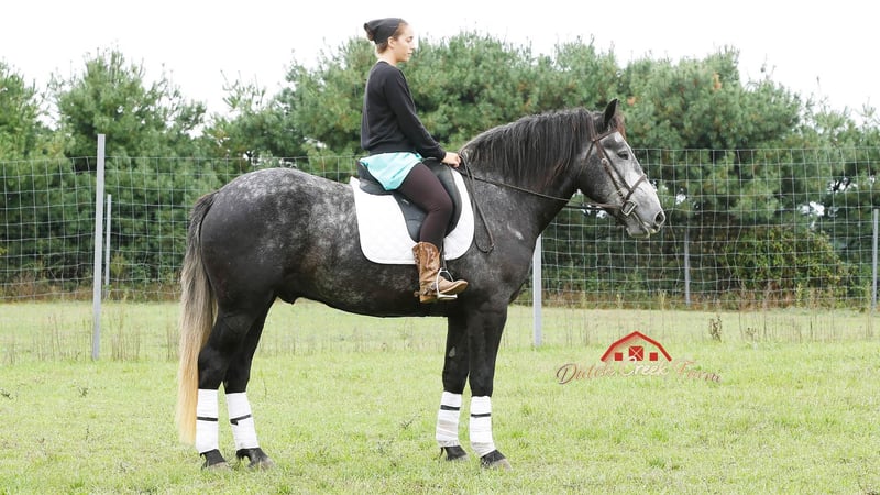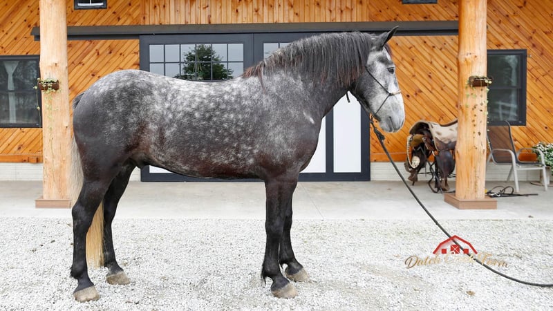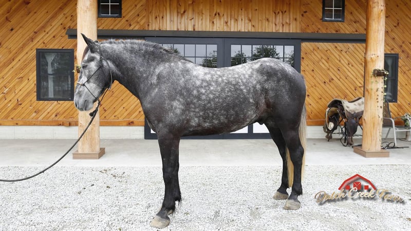 ONLINE AUCTION Place your bids at www.PlatinumEquineAuction.com Starting Bid $3500 Auction ends November 10th, 2024 Need a new saddle? Check out White Rock Saddles on our website or Facebook! Check out this guy!!! Mojo comes by his name honest as he has got the MOJO! He is a coming 5 year old, Dapple Grey Draftcross Gelding, standing 15.2h and he is weighing aroun 1350lbs. Mojo is very well trained to drive and ride. He has been in our tour wagons all summer and has hauled numerous guest. He is not phased by any of our exotics and stands patiently at all stops. He will also drive single in a carriage for an enjoyable afternoon drive. Mojo is also great under saddle! He picks up the correct leads, lopes nice soft easy circles, moves off of leg pressure, neckreins and backs. He is great on trails, he will cross creeks, ditches, deadfall and scales steep slopes. Mojo will ride western or english either one. He has been ridden by all levels of riders and takes care and respects them all. He will ride out alone or in a group either one. He is the safe horse whether ridden daily or even if you leave him off for 3 months. Mojo can go in any direction from foxhunting, to jumping, to ranch work to trails… you name it and he can do it!! We’d love to talk with you about Mojo or set up a time for you to come meet him in person. We are located in Shipshewana, IN. Contact Dutch Creek Farm Vernon 260-768-4416 with any questions. ONLINE AUCTION Place your bids at www.PlatinumEquineAuction.com Starting Bid $3500 Auction ends November 10th, 2024 Need a new saddle? Check out White Rock Saddles on our website or Facebook!