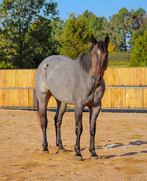 🍂 𝓐𝓾𝓽𝓾𝓶𝓷 𝑨𝑳𝑳 𝑺𝑻𝑨𝑹 𝑳𝑰𝑵𝑬𝑼𝑷 🍂 Happening now thru MONDAY | OCTOBER 6th - Available EXCLUSIVELY on HorseBid's website! For more details and to register visit: www.Horsebid.com CONSIGNOR CONTACT: Triple T Farms 417-247-7395 LOCATION: Summersville, MO BREED: Quarter Horse REGISTERED: Yes REGISTERED NAME: Heirs Blue Cowboy COLOR: Blue Roan HEIGHT: 15.3 AGE: 6 GENDER: Gelding Blue Jackpot is standing at 15.3 hands and is as gentle as they come. He’s the first to greet you in the field and follows you around like a puppy. He’s a favorite around the farm, especially with my kids. My son loves weaving between his legs and riding him in the pen. My 3-year-old enjoys leading him around the barn, and my 11-year-old nephew takes him for strolls down the road without a hitch. Blue Jackpot is a hard worker, too! He spent all winter working daily in the sale barn, pushing cows and moving livestock—all with ease. On weekends, he’s been learning roping and is making fantastic progress on the roping dummy and a few live cows. But he’s not just about work; he’s a trail rider's dream. He’s brave and never backs down from any challenge you put in front of him. Whether he’s leading the way or following along, he matches the group’s pace perfectly. He’s been trail ridden across Arkansas, Kansas, and Missouri, so he’s ready for all kinds of terrain. He has even taken a trip to Texas hog hunting and absolutely excelled at that as well. Blue Jackpot will be a wonderful addition to anyone’s team—whether it's for ranch work, roping, or as a smooth and reliable trail partner. He has a calm demeanor that makes him perfect for riders. His friendly nature and good looks will surely win your heart! Come meet Blue Jackpot for yourself and take home this gorgeous blue roan—he’s ready to be your new best friend!